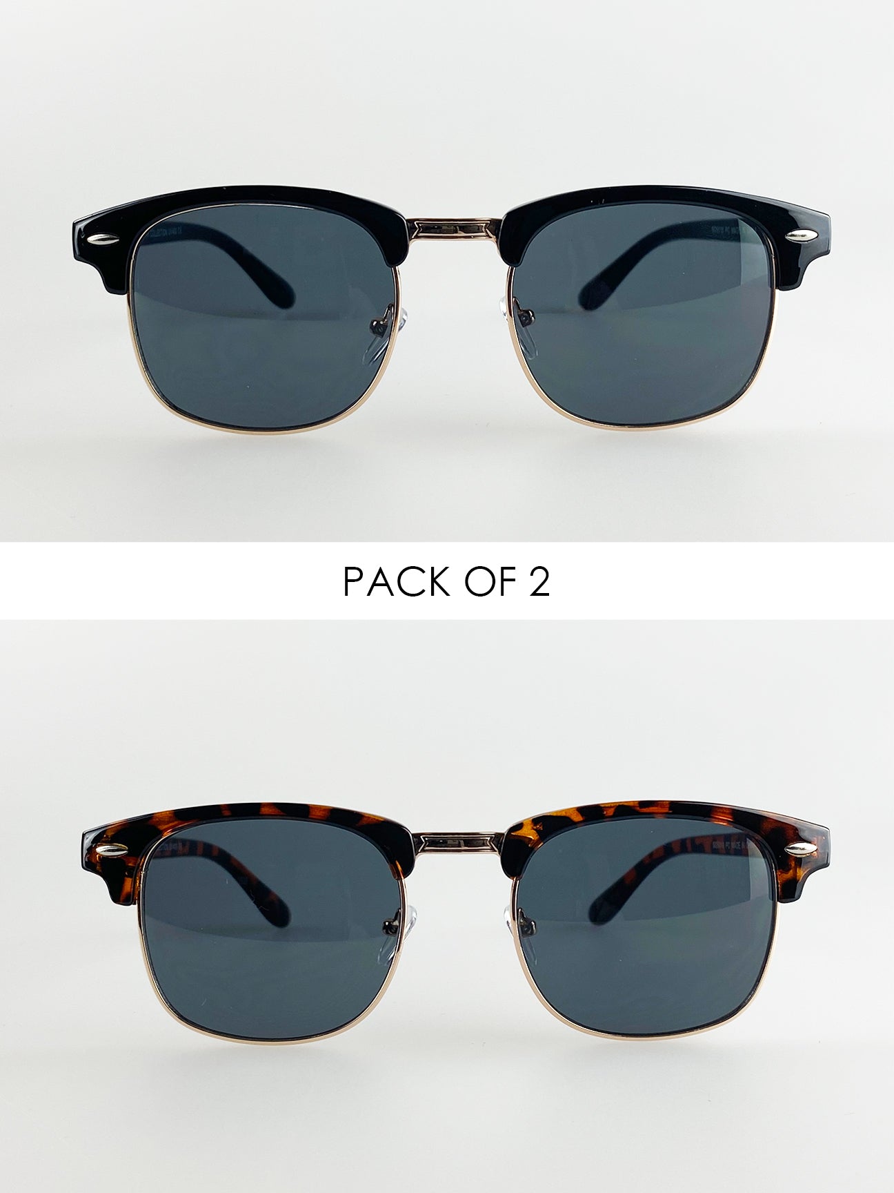 2 Pack Rounded Sunglasses In Tortoise Shell And Black
