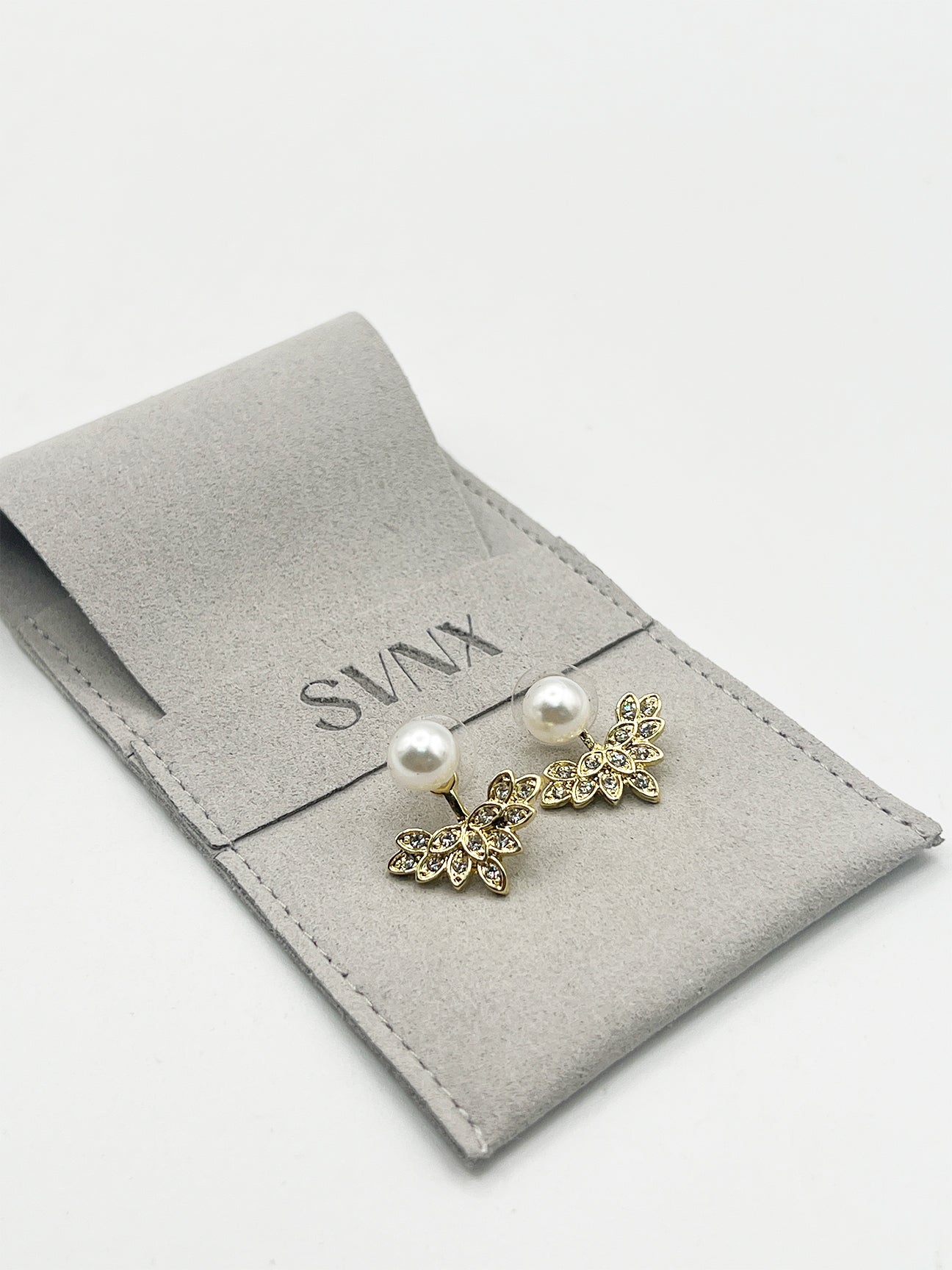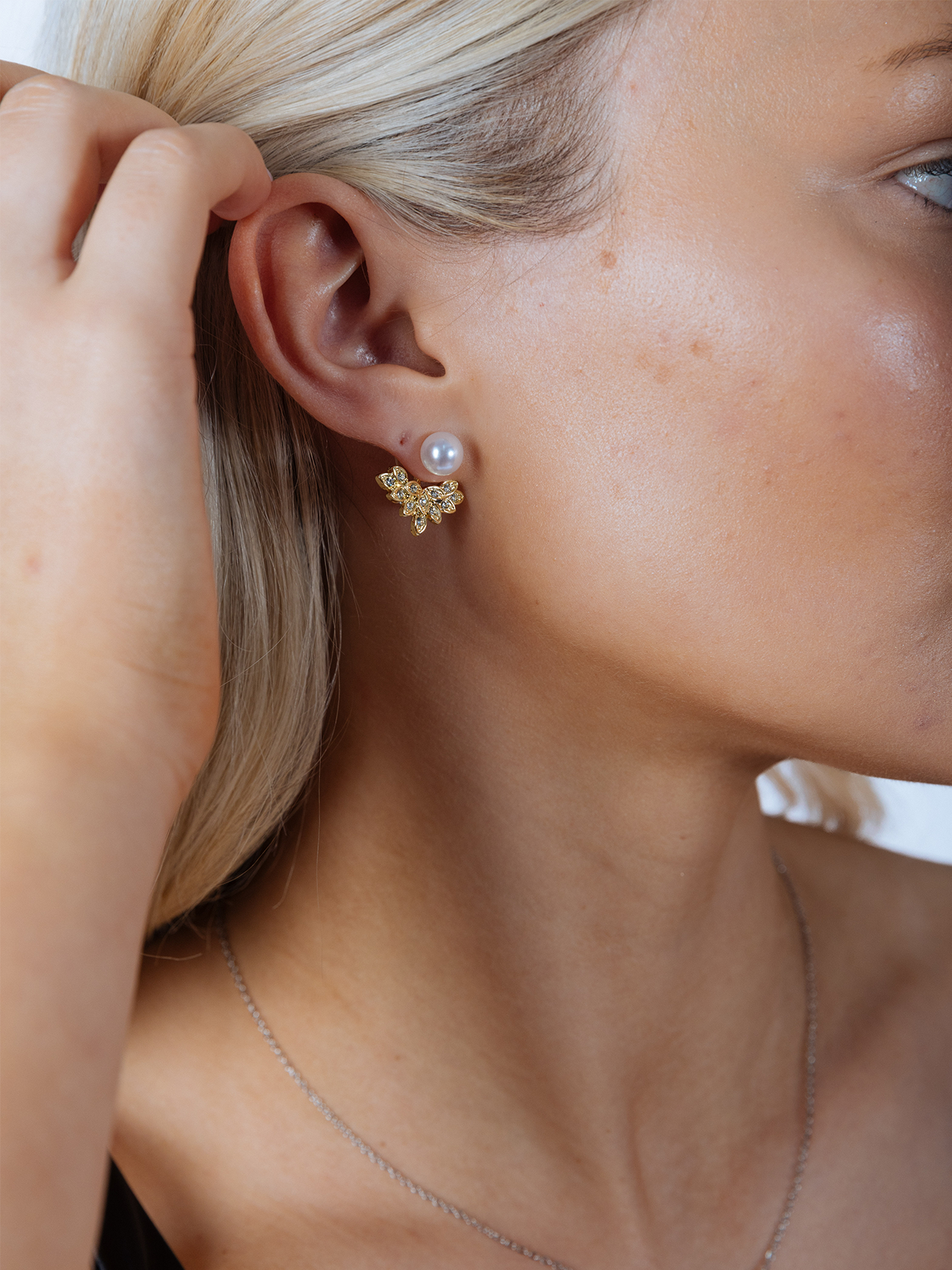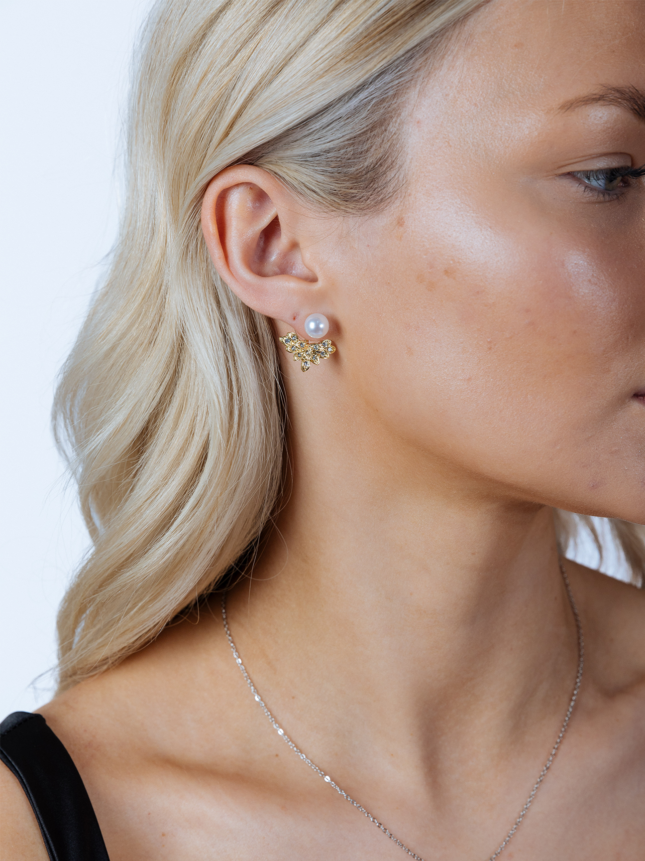 Diamante Pearl Leaf Earrings in Gold – a truly versatile addition to your jewellery collection. Wear them with just the elegant pearl, or add the shimmering diamante leaf detailing for a touch of sparkle. The leaf can be styled in front or behind the ear, offering multiple looks in one piece.