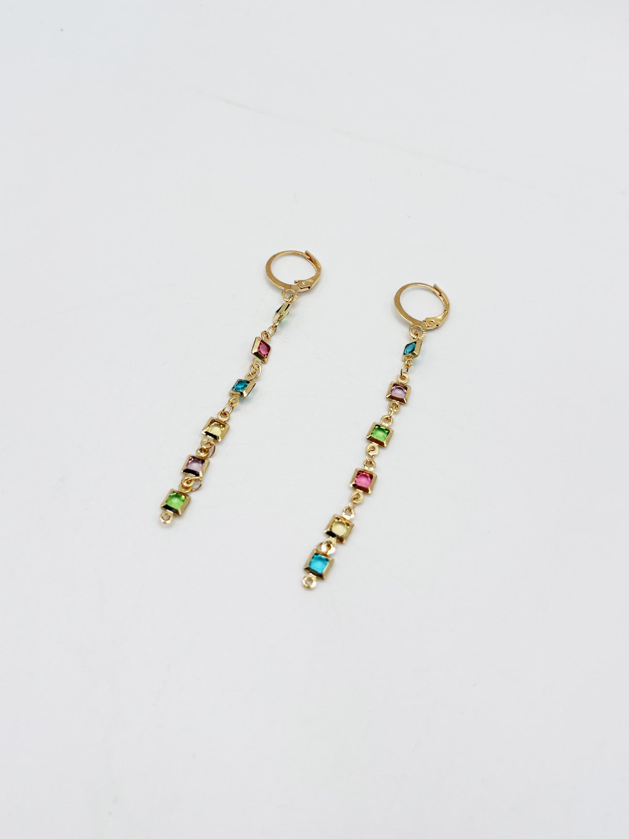 A stunning statement piece with interlinked square crystals in dazzling colors. Adds a bold, modern touch and a pop of brightness to any outfit while maintaining elegance and charm.