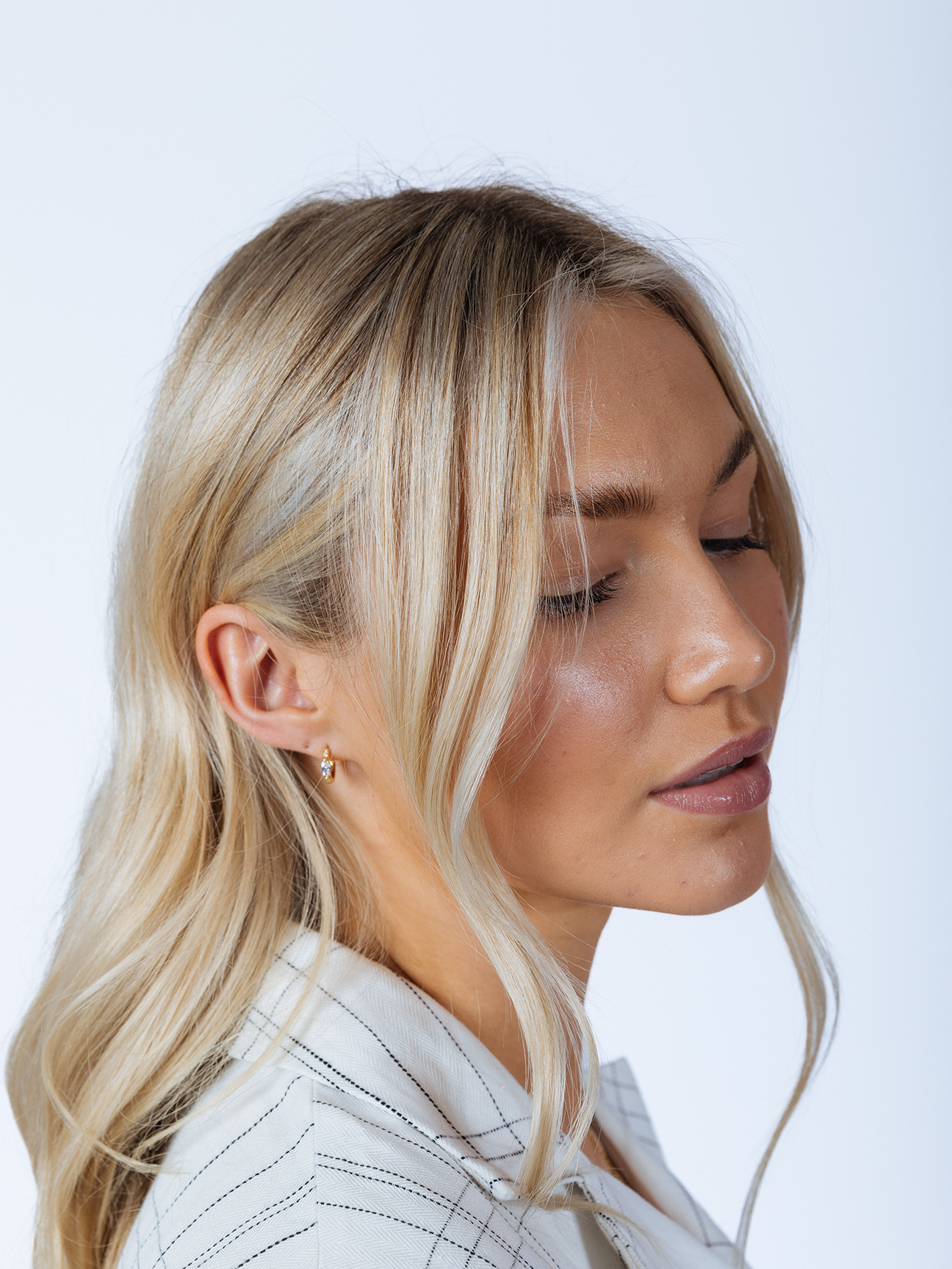 Oval Diamante Huggie Hoops – the perfect everyday earring to elevate any look. Whether dressing up or down, these hoops add a subtle yet stunning touch of sparkle to any outfit, making them versatile for any occasion.