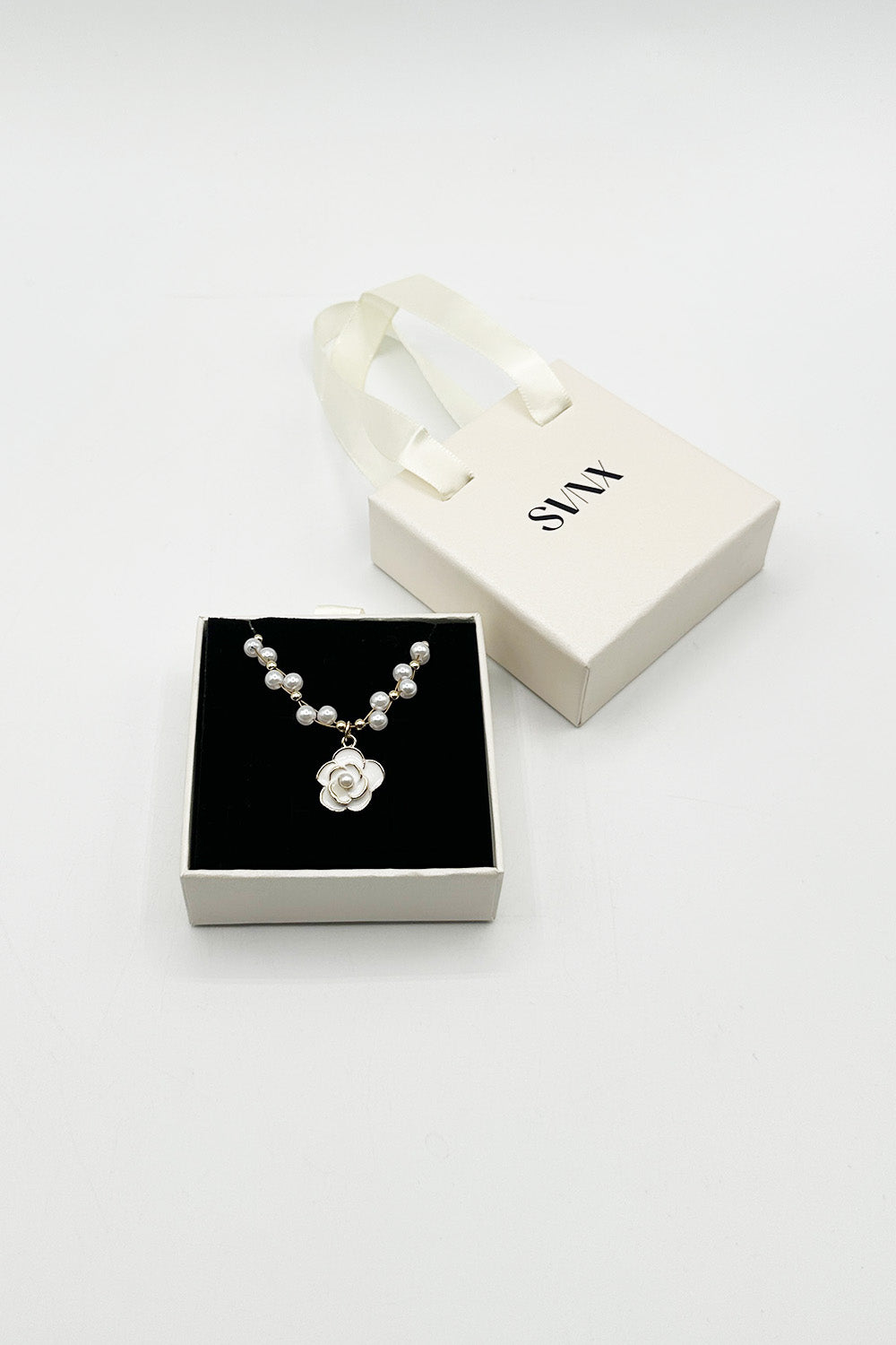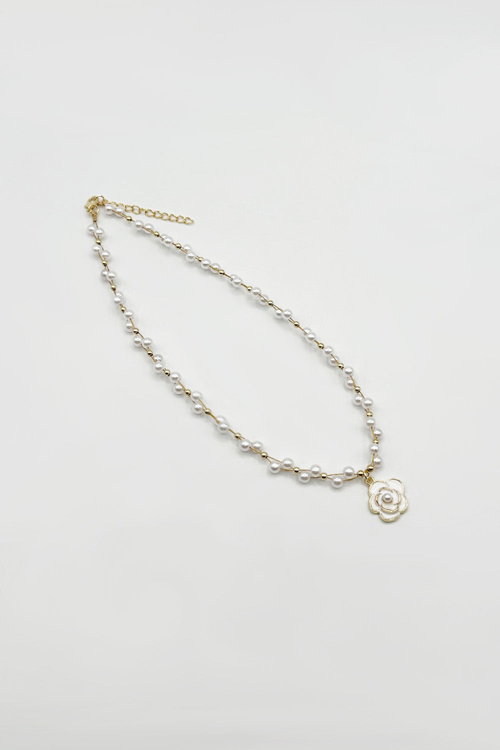 Pearl Chain Necklace with Camellia Pendant - Gift Boxed