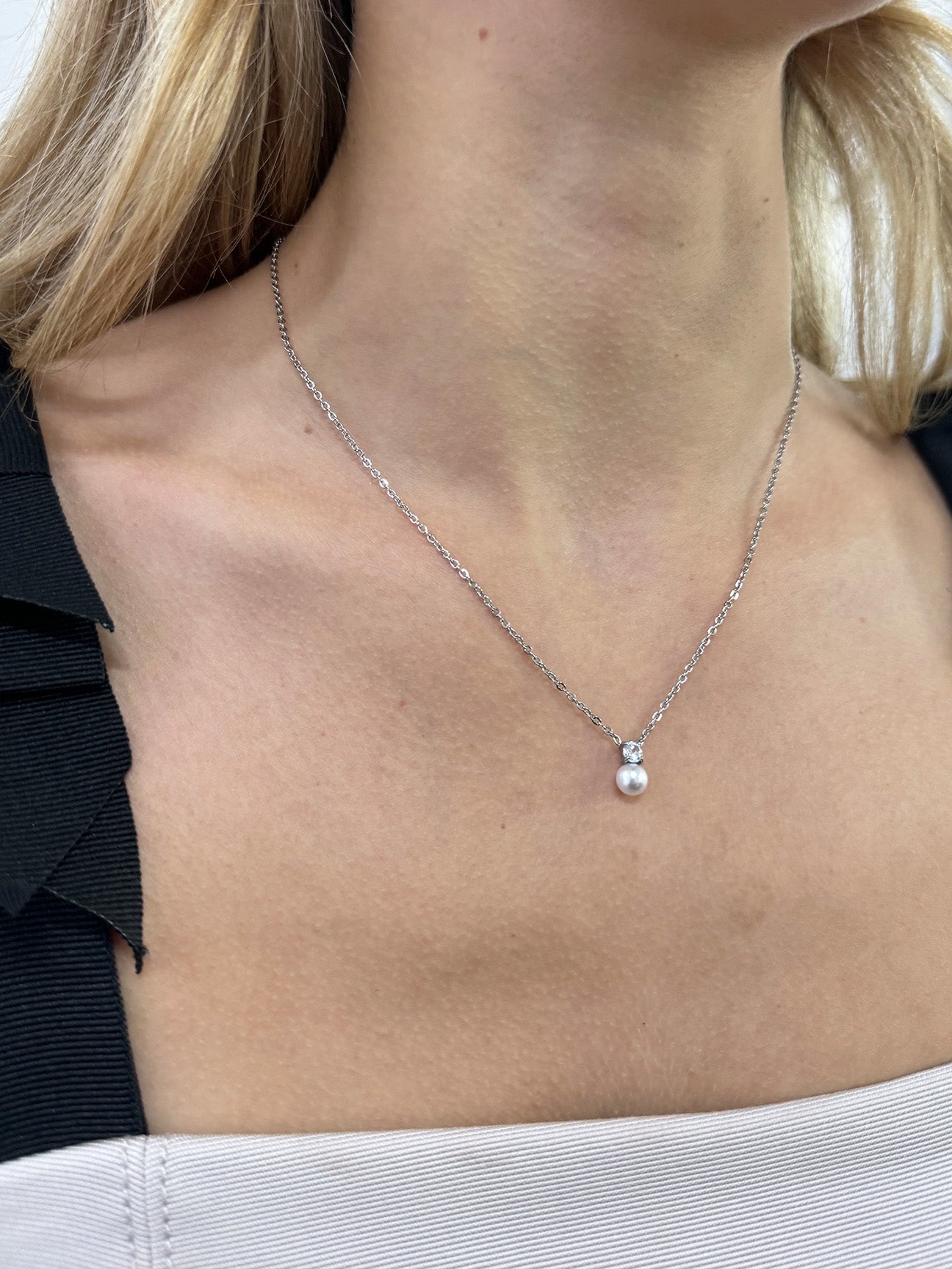 Add a touch of sparkle to your everyday style with Mini Pearl Diamante Necklace. Crafted in a silver-tone finish, this dainty and elegant necklace features a beautiful pearl accented with delicate diamante detail, making it perfect for any occasion. Ideal as a thoughtful gift or a treat for yourself, this versatile piece adds subtle sophistication to any outfit. Pair with matching earrings to complete the look.
