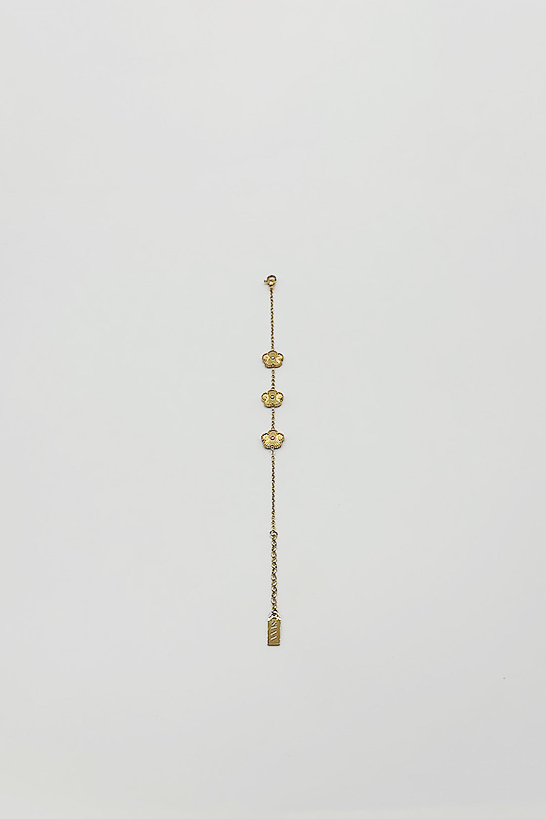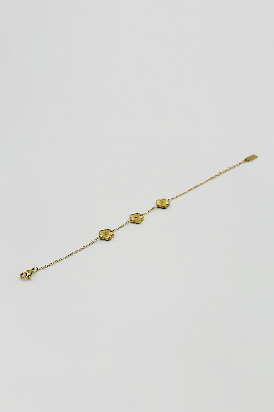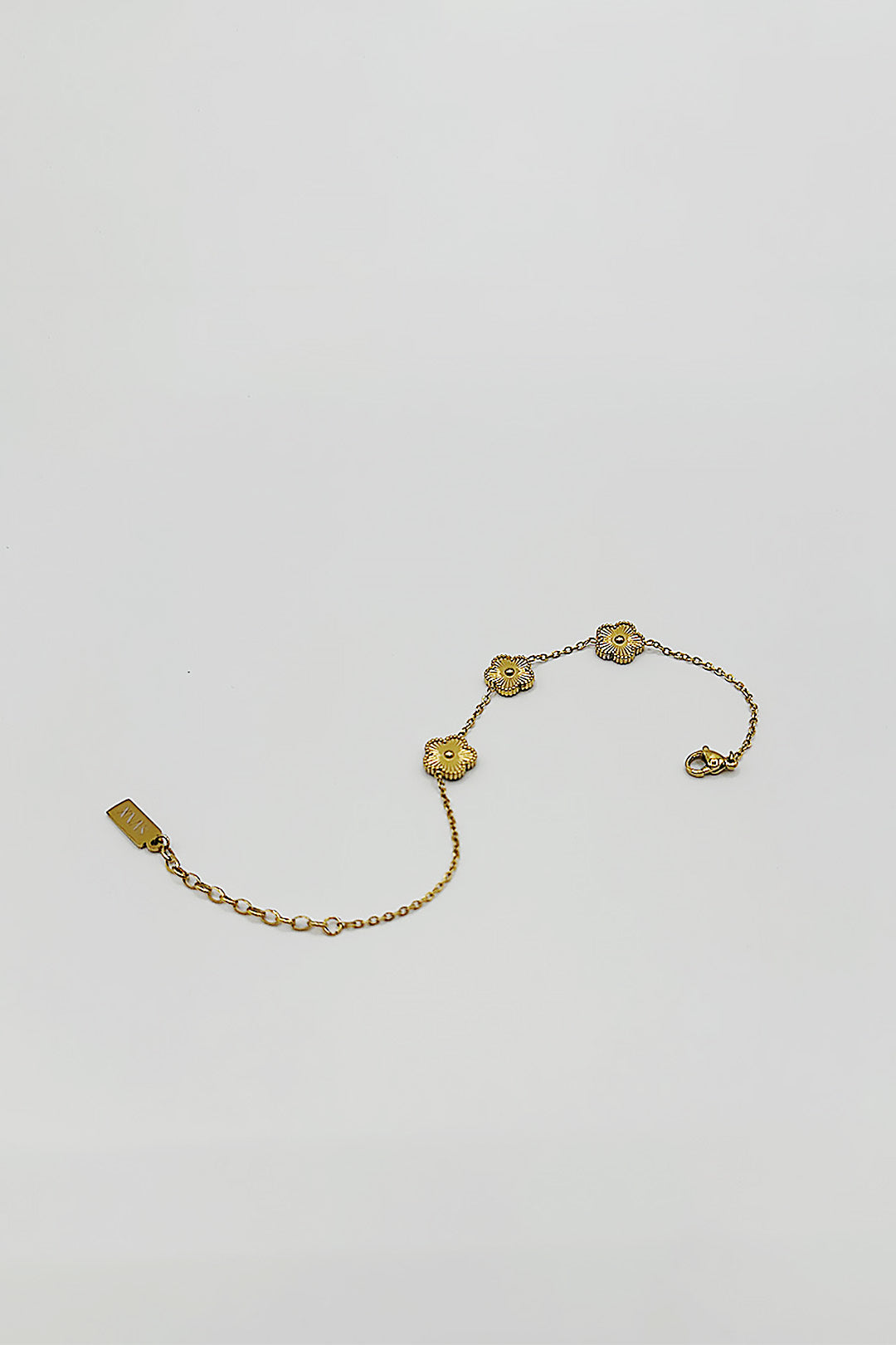 Floral Bracelet in Gold. Featuring a delicate clover design adorned with a lustrous pearl, this elegant piece adds a refined touch to any outfit.