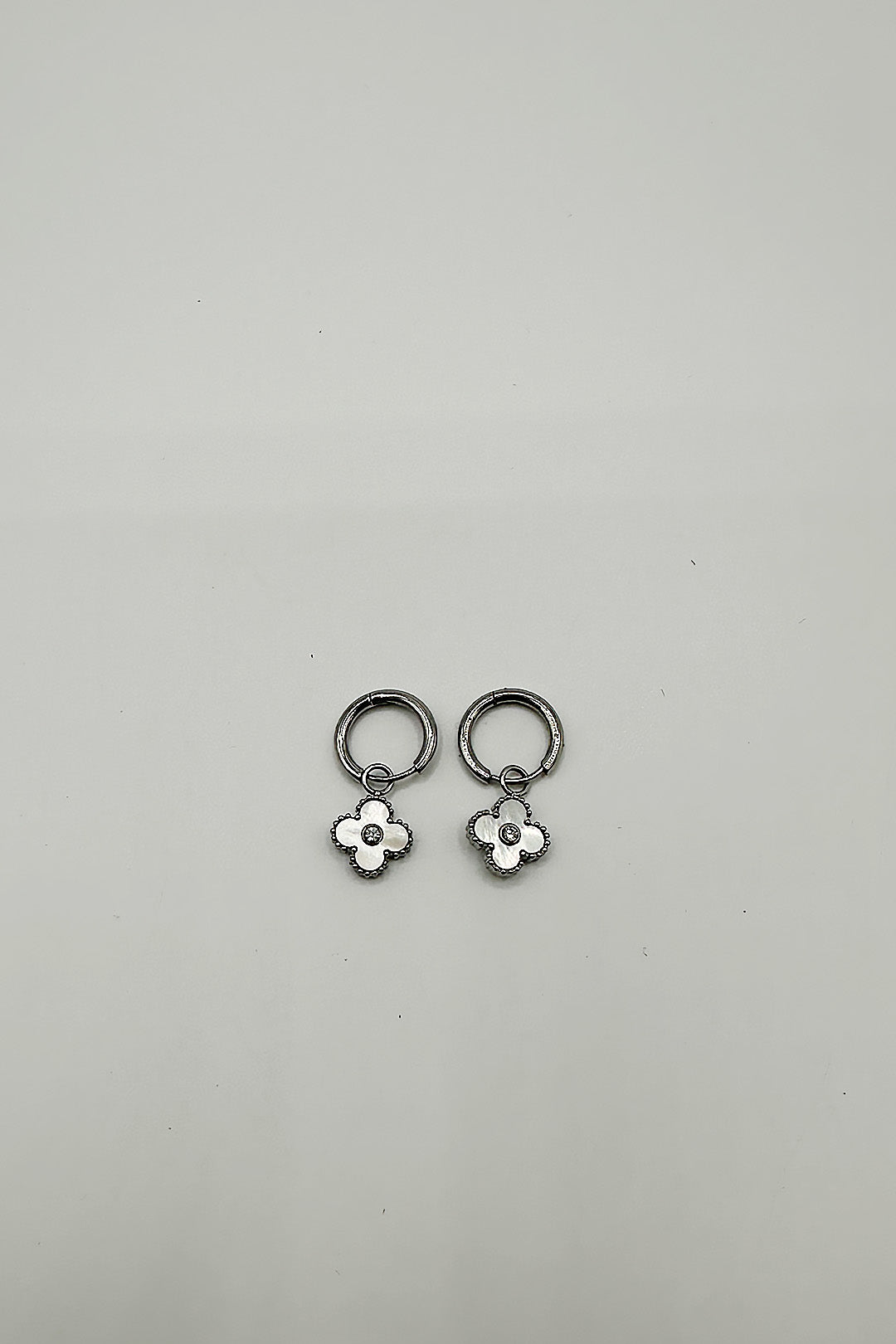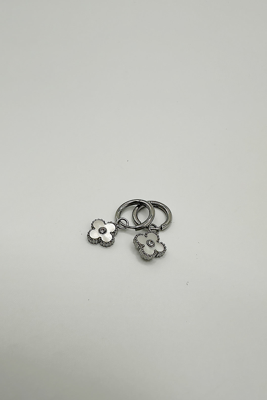 Mini Clover Drop Hoop Earrings in Silver