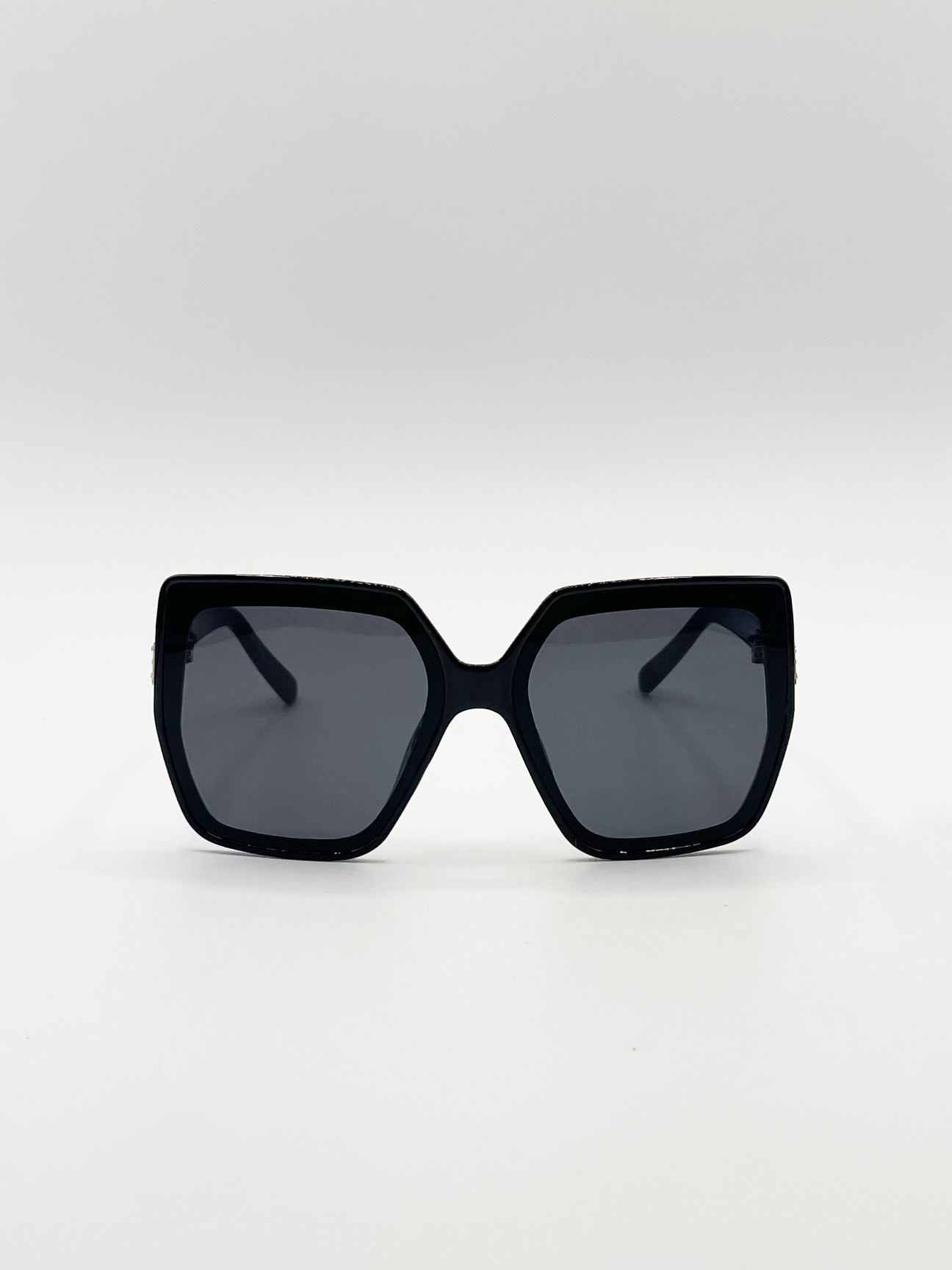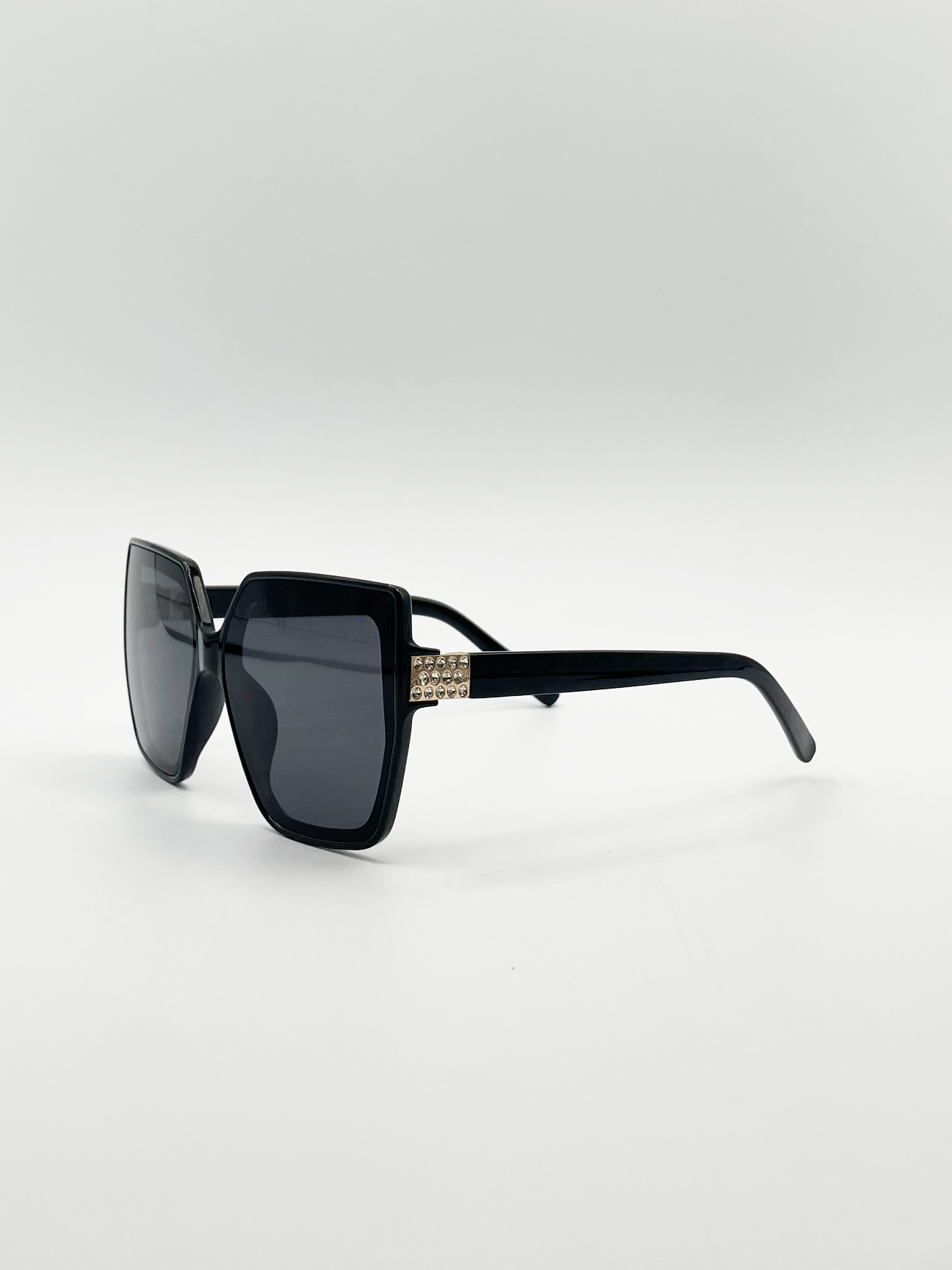 - Oversize Cateye Sunglasses with Diamante Detail in Black