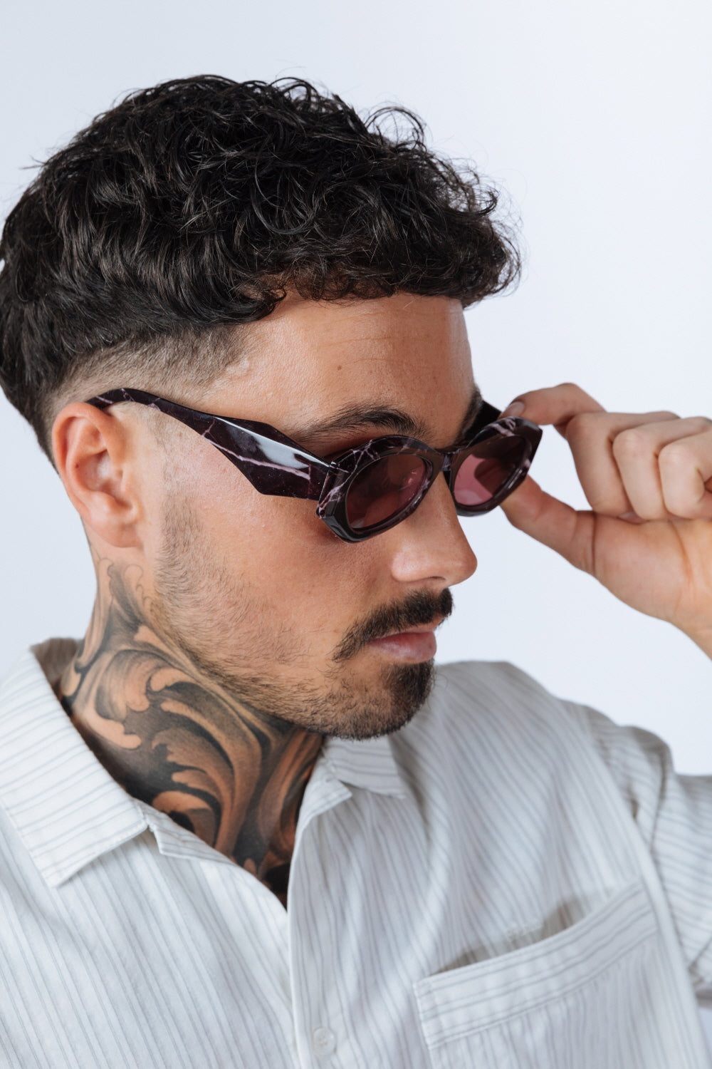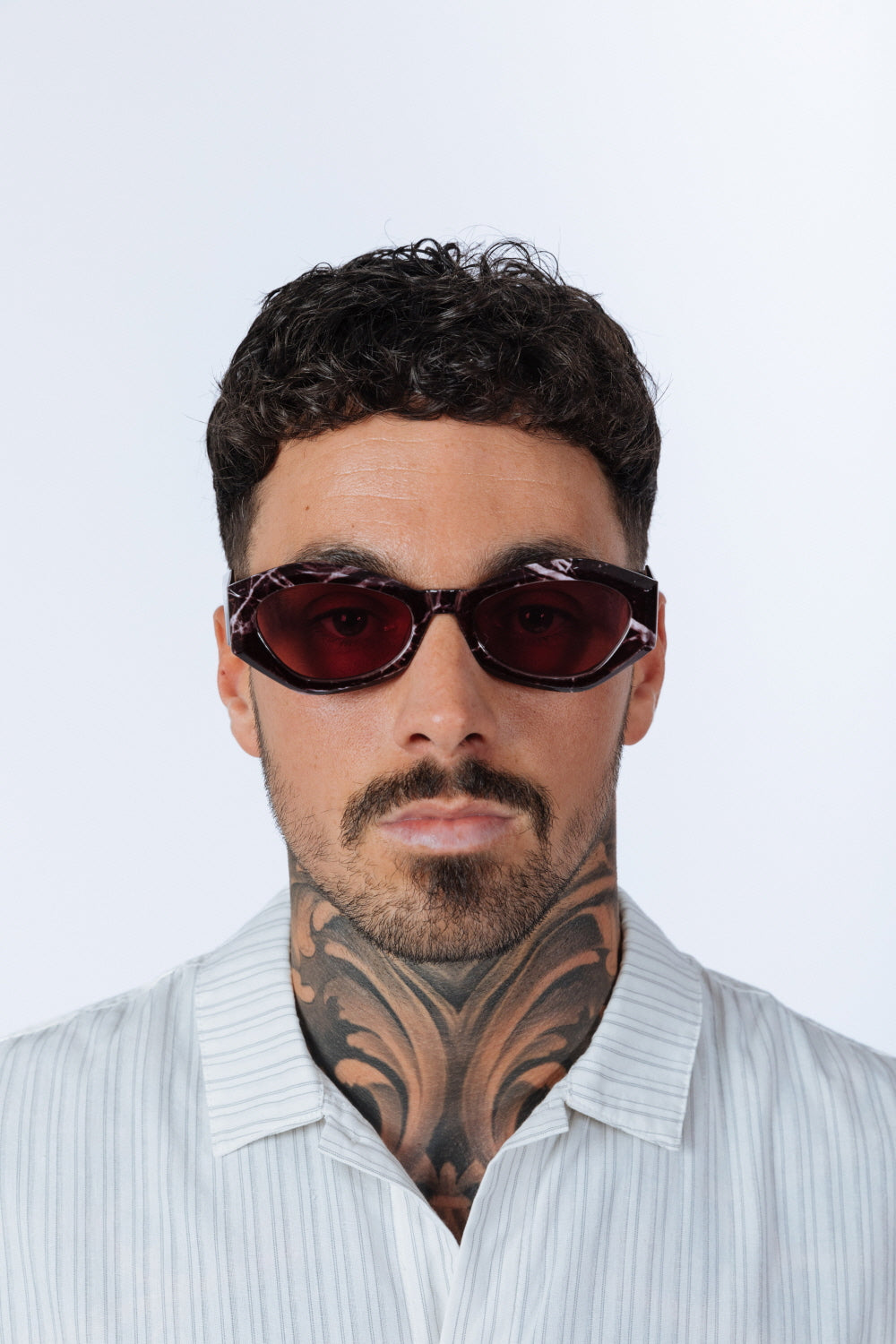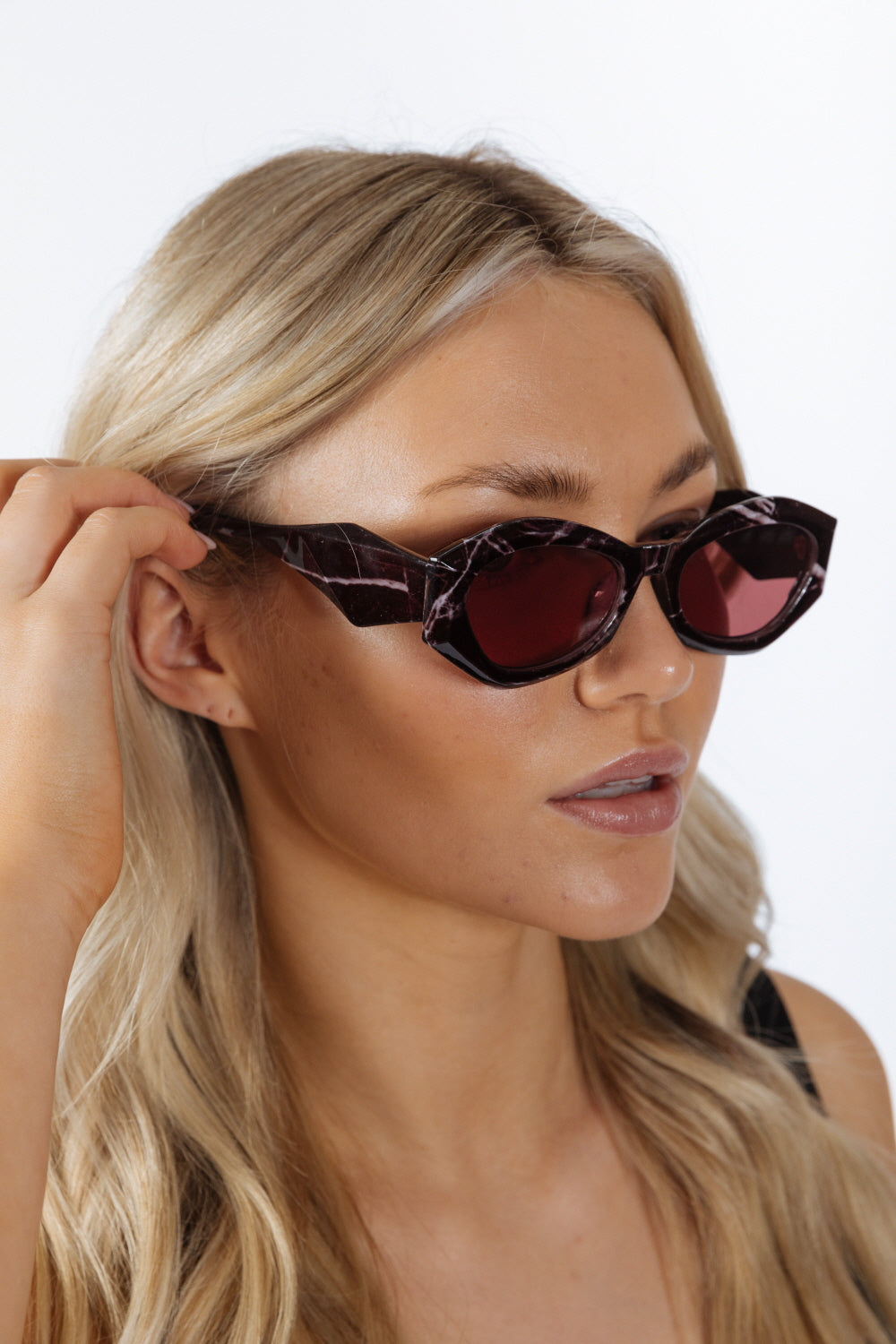 Retro Polygonal Cat-Eye Sunglasses in Red