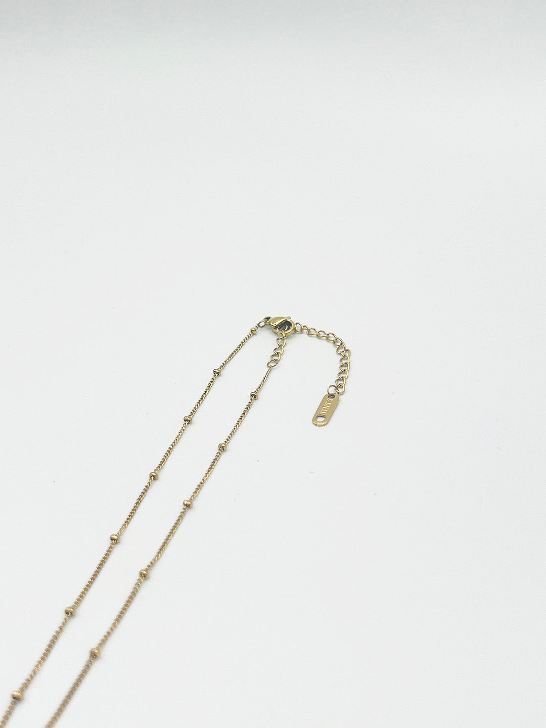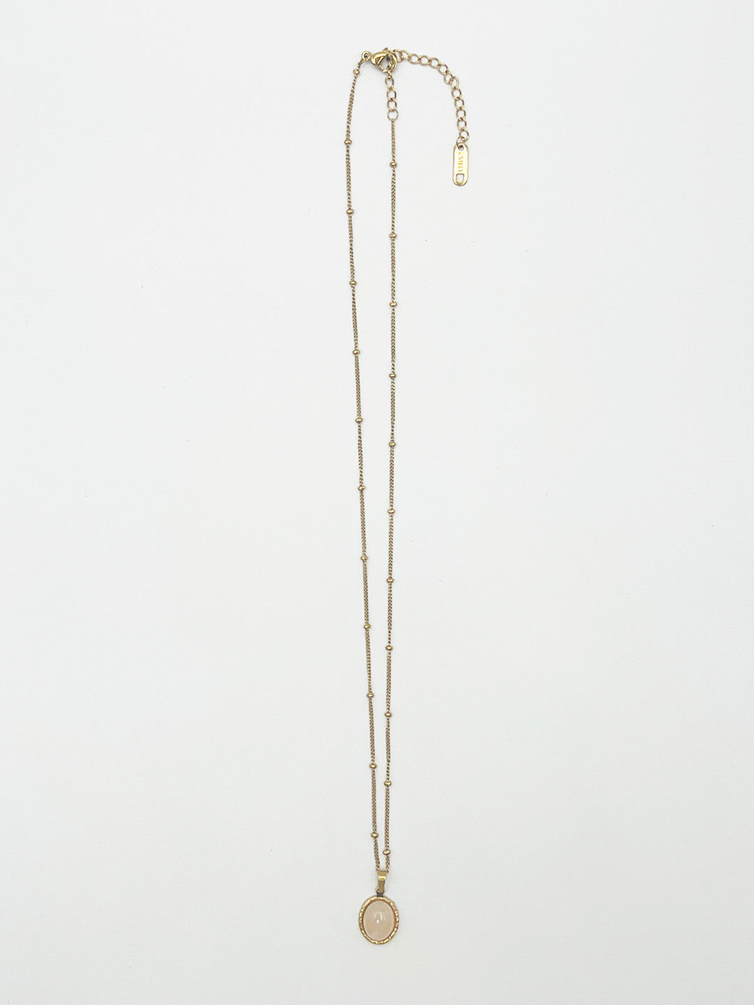Grace your neckline with this stunning necklace, expertly crafted with premium materials. A perfect blend of elegance and style, ideal for both everyday wear and special occasions. Necklace: L:21cm +5cm with pendant 23.5. Pendant: H: 2.5 L:1cm. Stainless steel. Colour: Gold/Pink. SKU:JE410709. Gift Boxed
