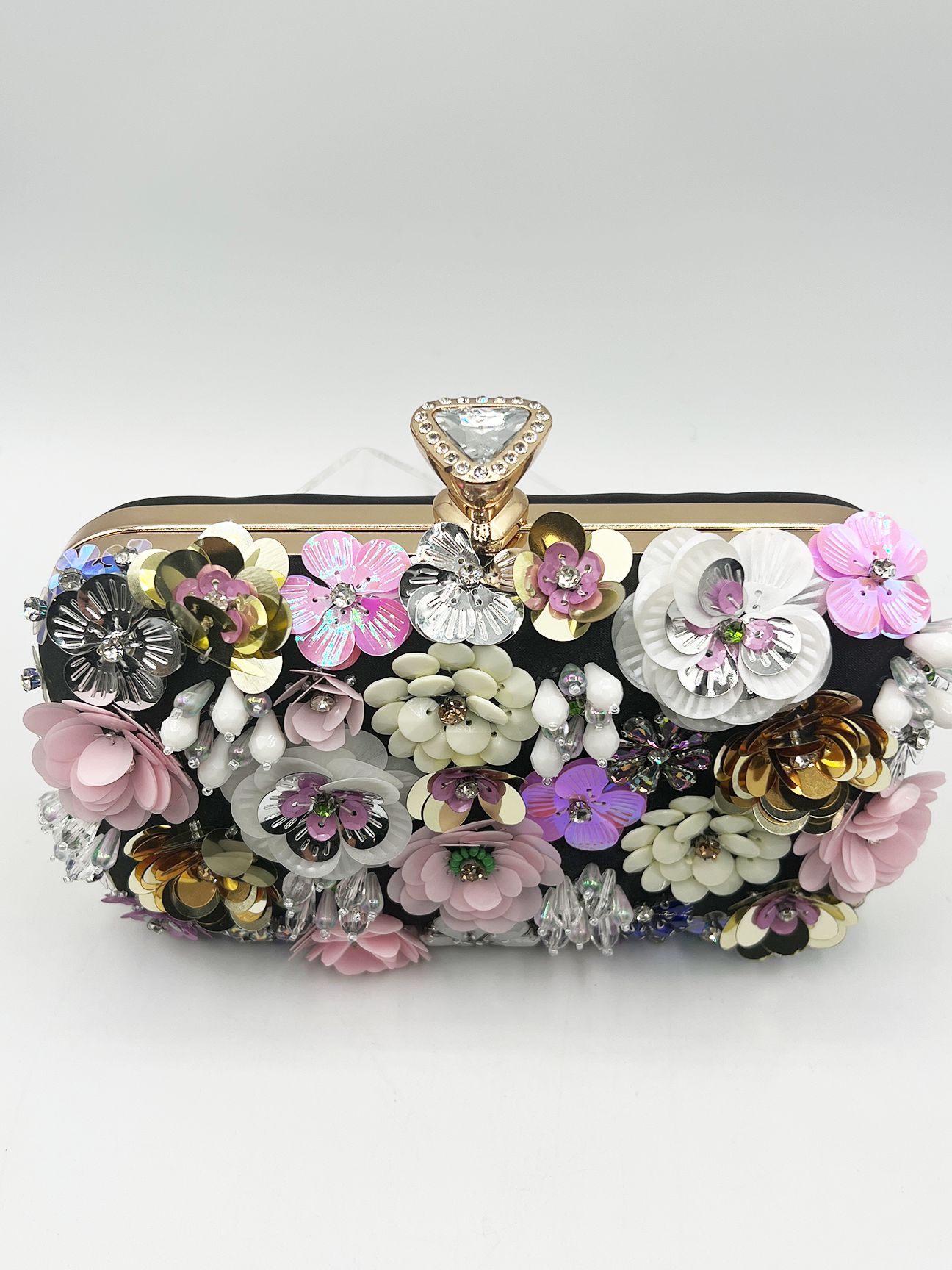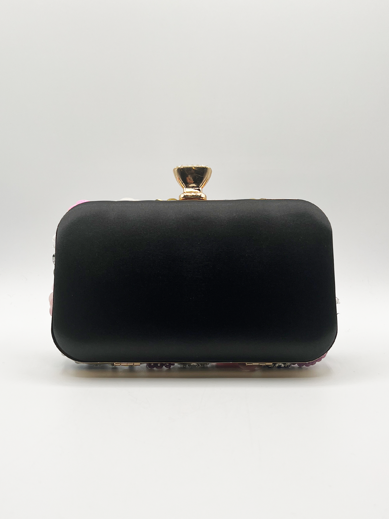 Embrace elegance with the Black Floral Applique Clutch Bag by SVNX. Perfect for any occasion, this beautifully crafted piece features intricate floral detailing that adds a touch of sophistication to any outfit. With the option to wear it with a chain strap or as a handheld clutch, it's a versatile accessory that’s sure to turn heads.