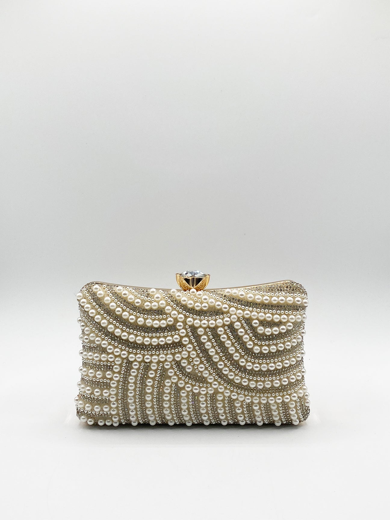Elevate your ensemble with the Luxurious Gold Pearl Embellished Clutch Bag by SVNX. Designed to add a touch of glamour, this stunning bag features delicate pearl detailing on a rich gold base, creating a timeless, sophisticated look. Wear it with the optional chain strap for versatility or carry it as a classic clutch. This piece is the perfect blend of elegance and luxury, making it an exquisite addition to any outfit.