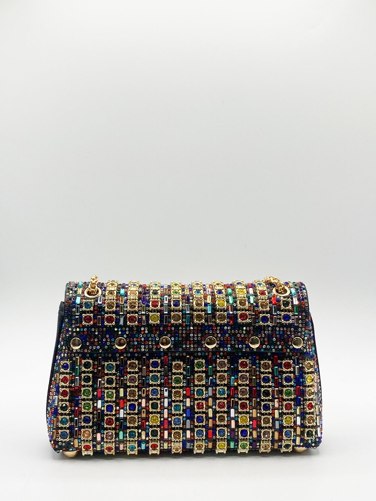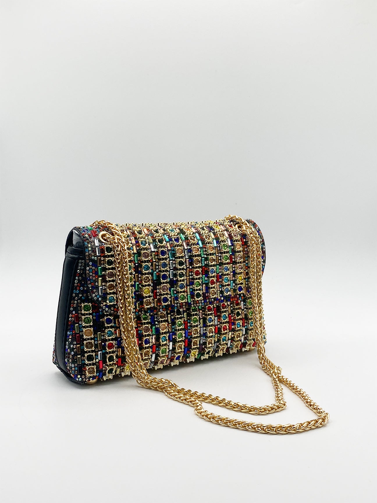 Make a bold statement with the Multi-Coloured Embellished Clutch Bag by SVNX. Bursting with vibrant colors and intricate embellishments, this eye-catching piece brings a playful yet chic touch to any outfit. Carry it as a standout double chain shoulder bag or use the chain strap for crossbody. Perfect for adding flair to your look, this bag is a celebration of style and color.