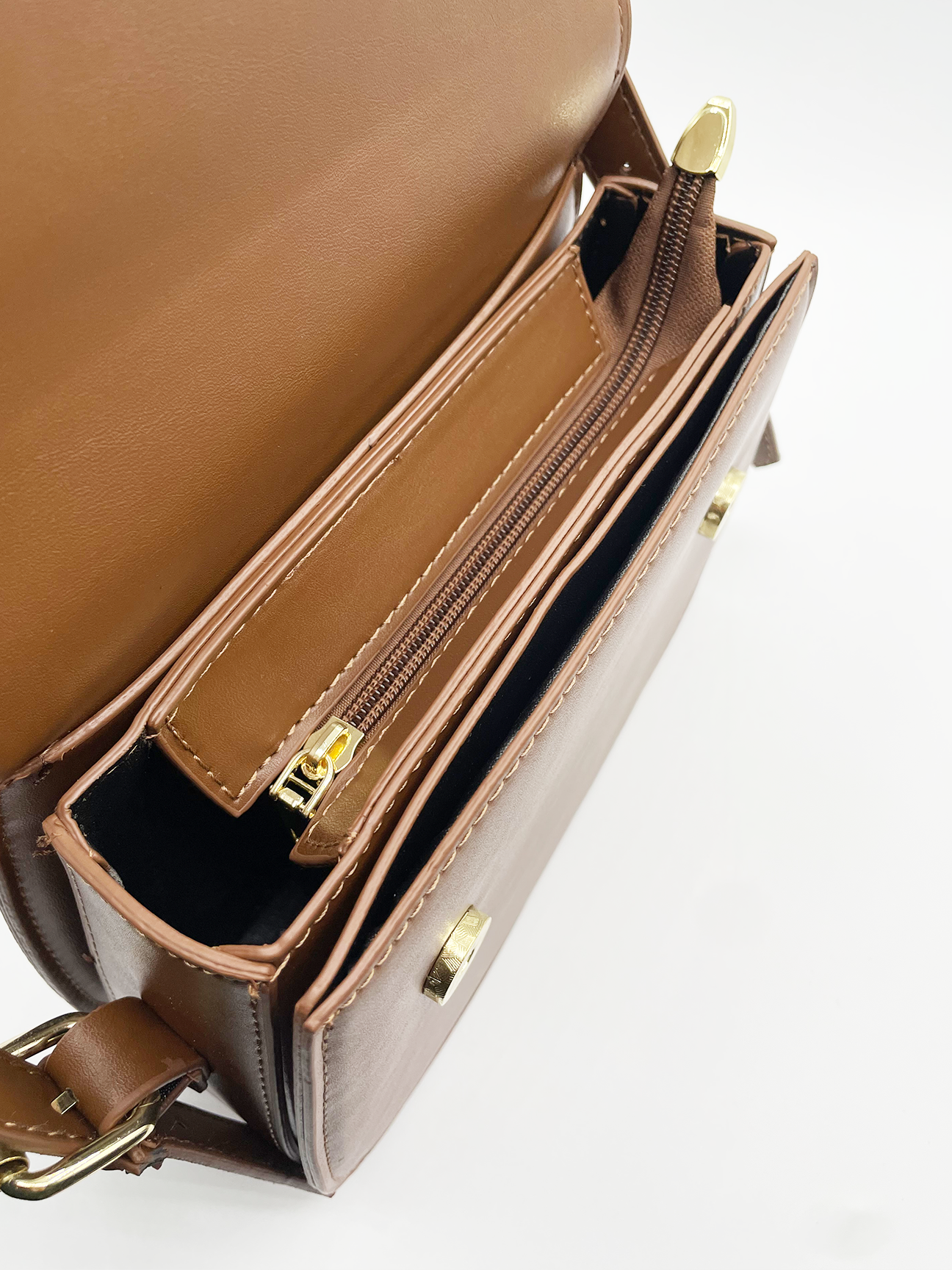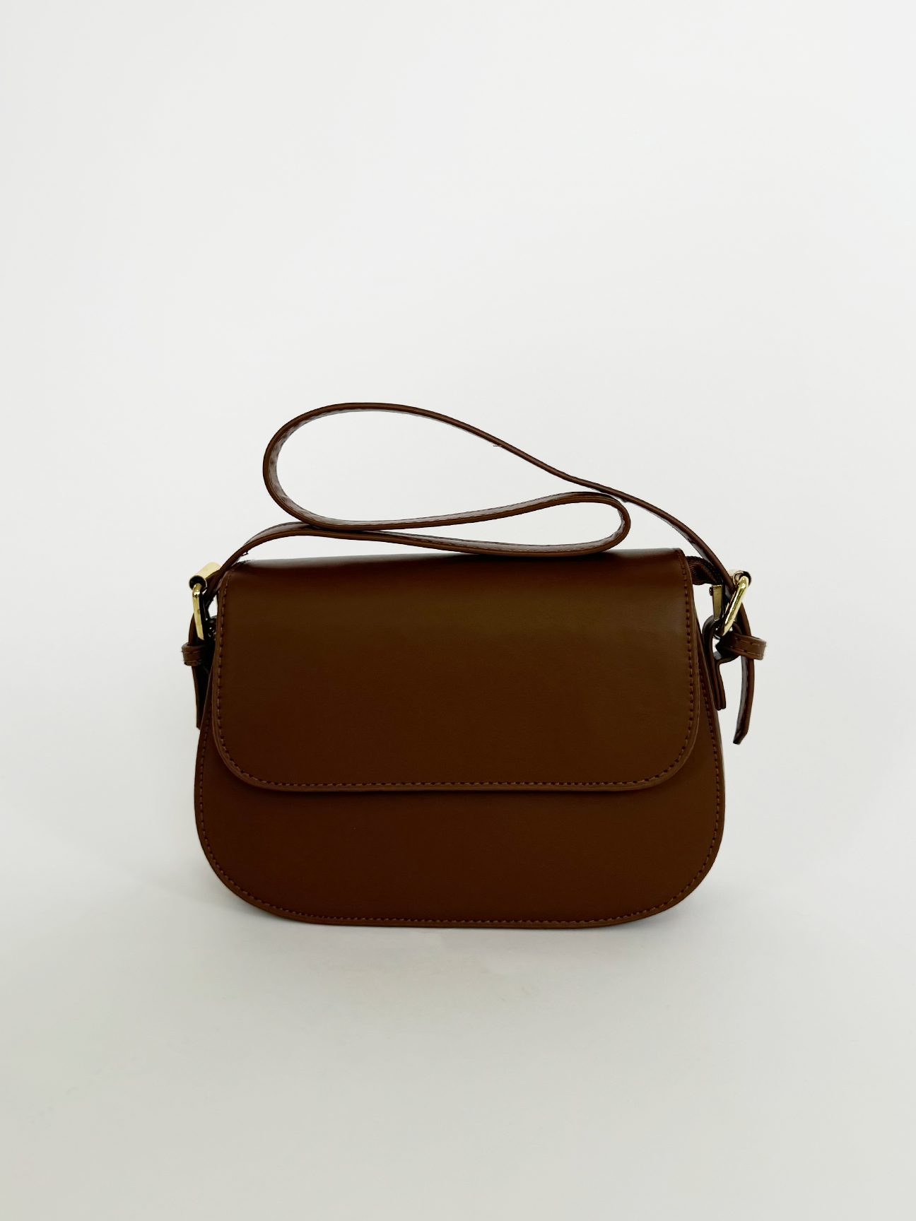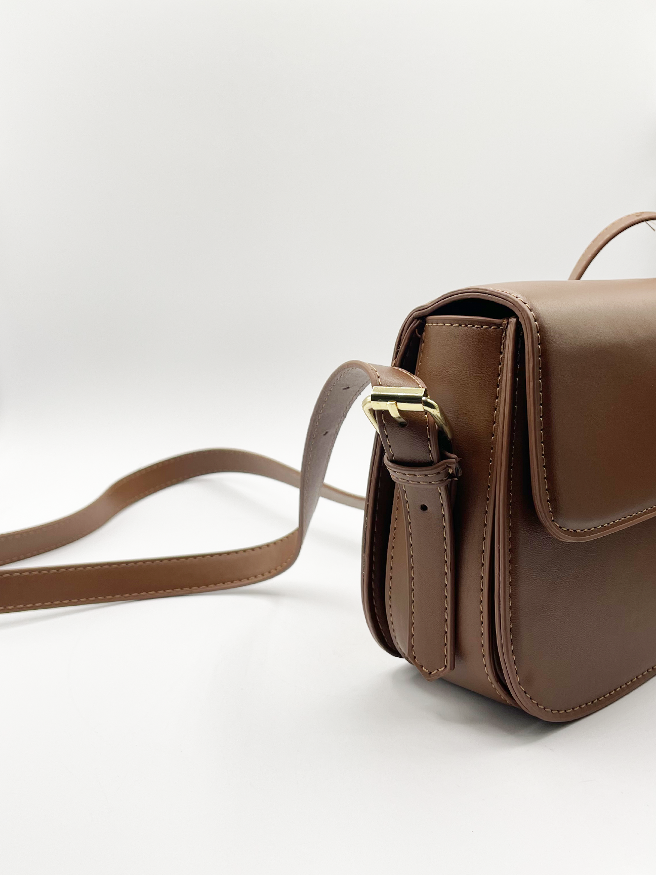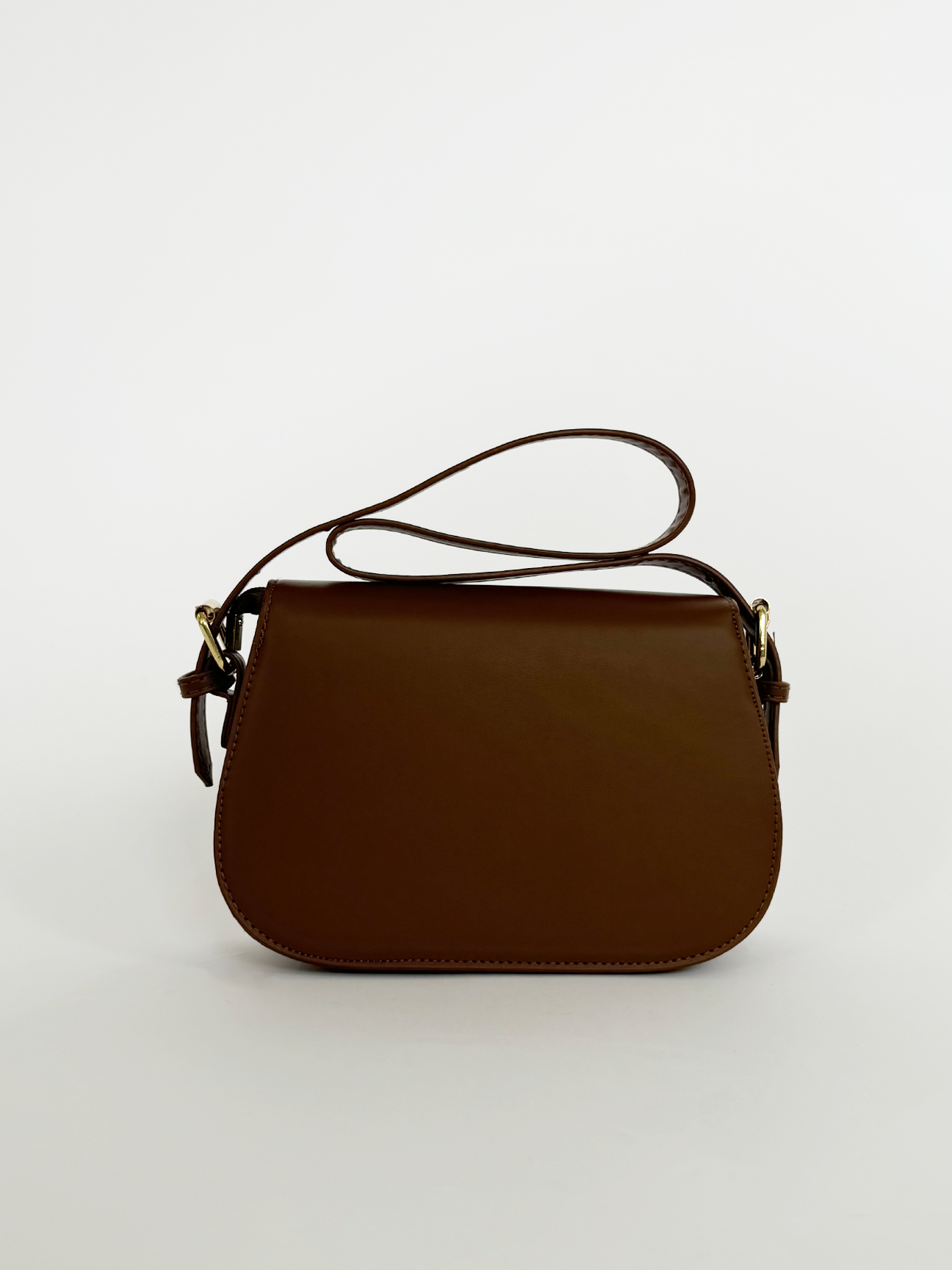 Introducing the Rounded Crossbody Bag in Brown by SVNX. Featuring rounded corner details and adjustable straps, this versatile everyday essential effortlessly complements any style. Its durable, structured design ensures easy upkeep, and with two strap options—short shoulder strap or crossbody—this bag adapts to your needs, making it a must-have accessory.