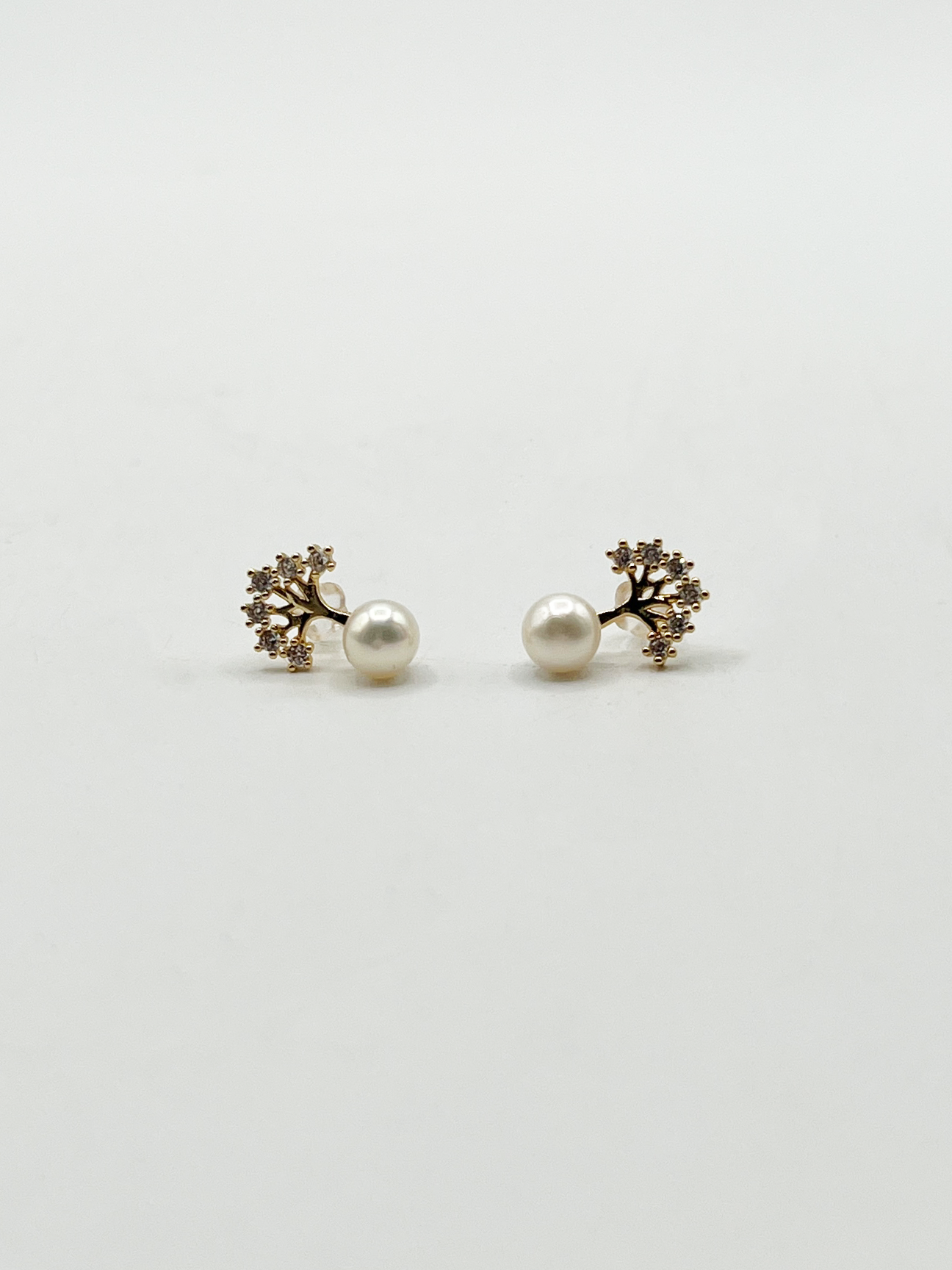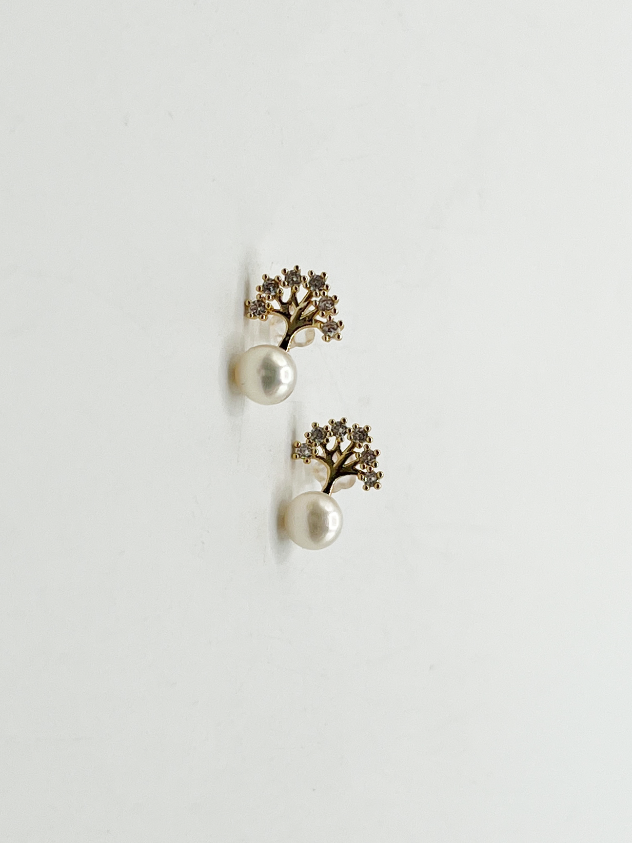 - Pearl Stud Earring with Diamante Tree in Gold