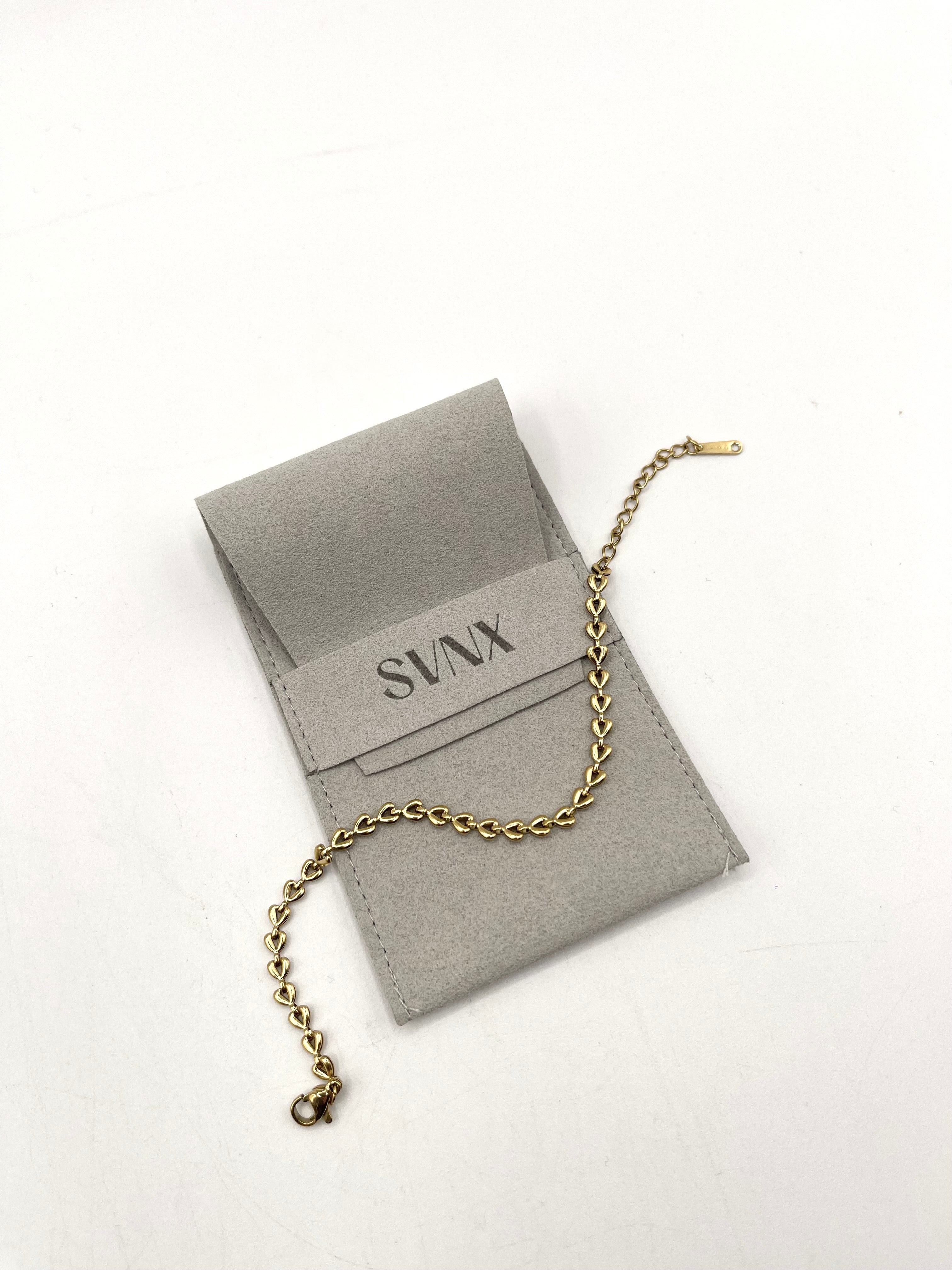 Heart Link Bracelet in Gold. A timeless piece with a delicate heart link design, blending subtle charm with refined elegance. Perfect for daily wear or special occasions, this bracelet adds a sophisticated touch to any outfit.