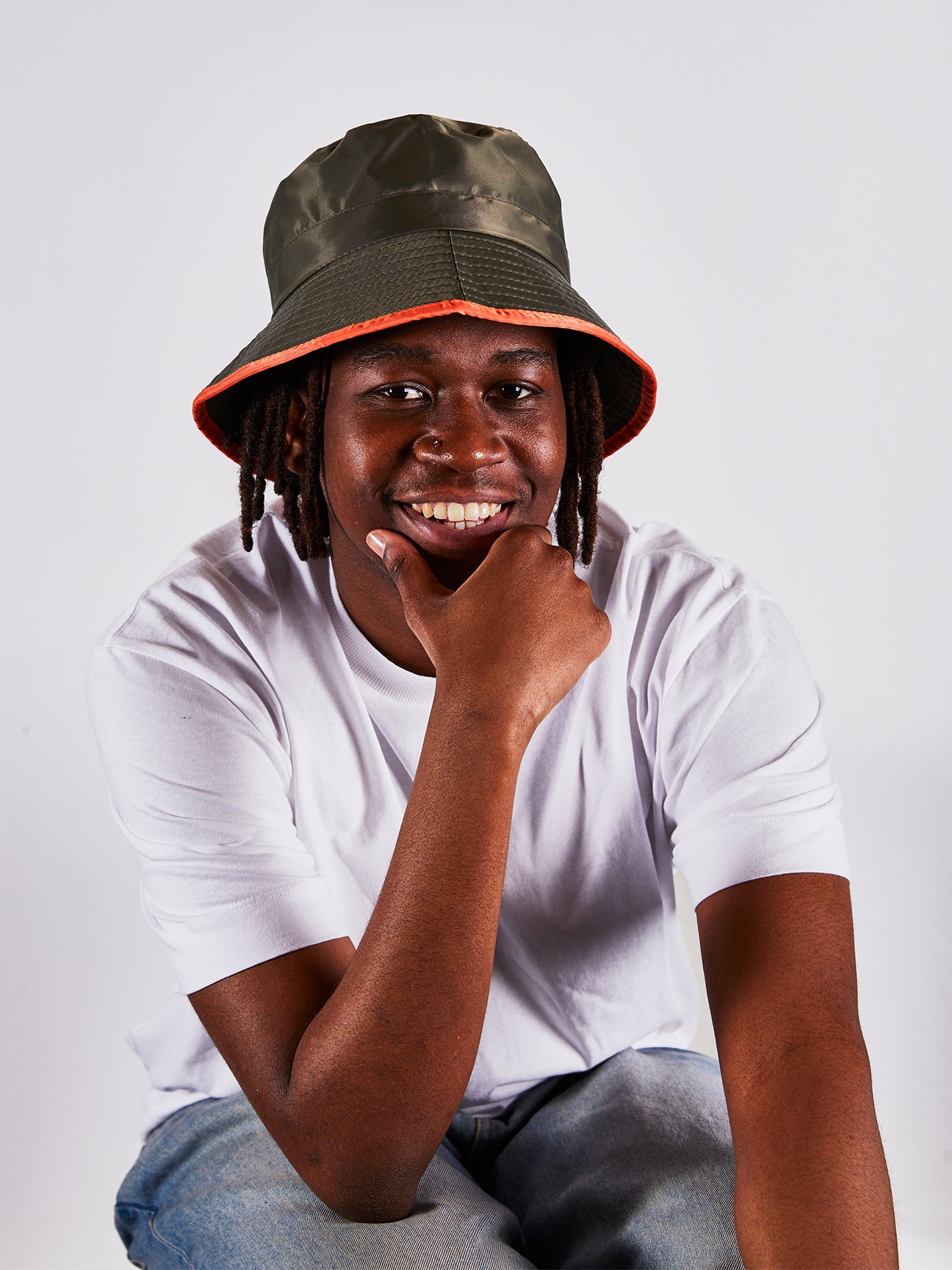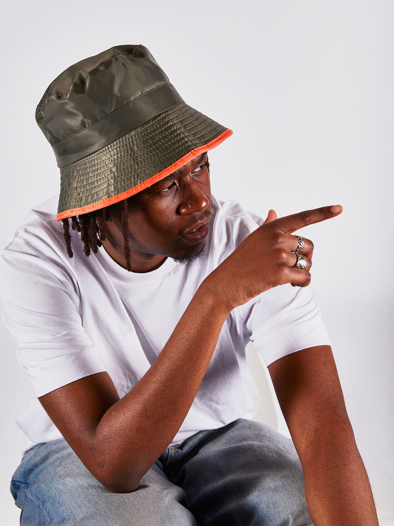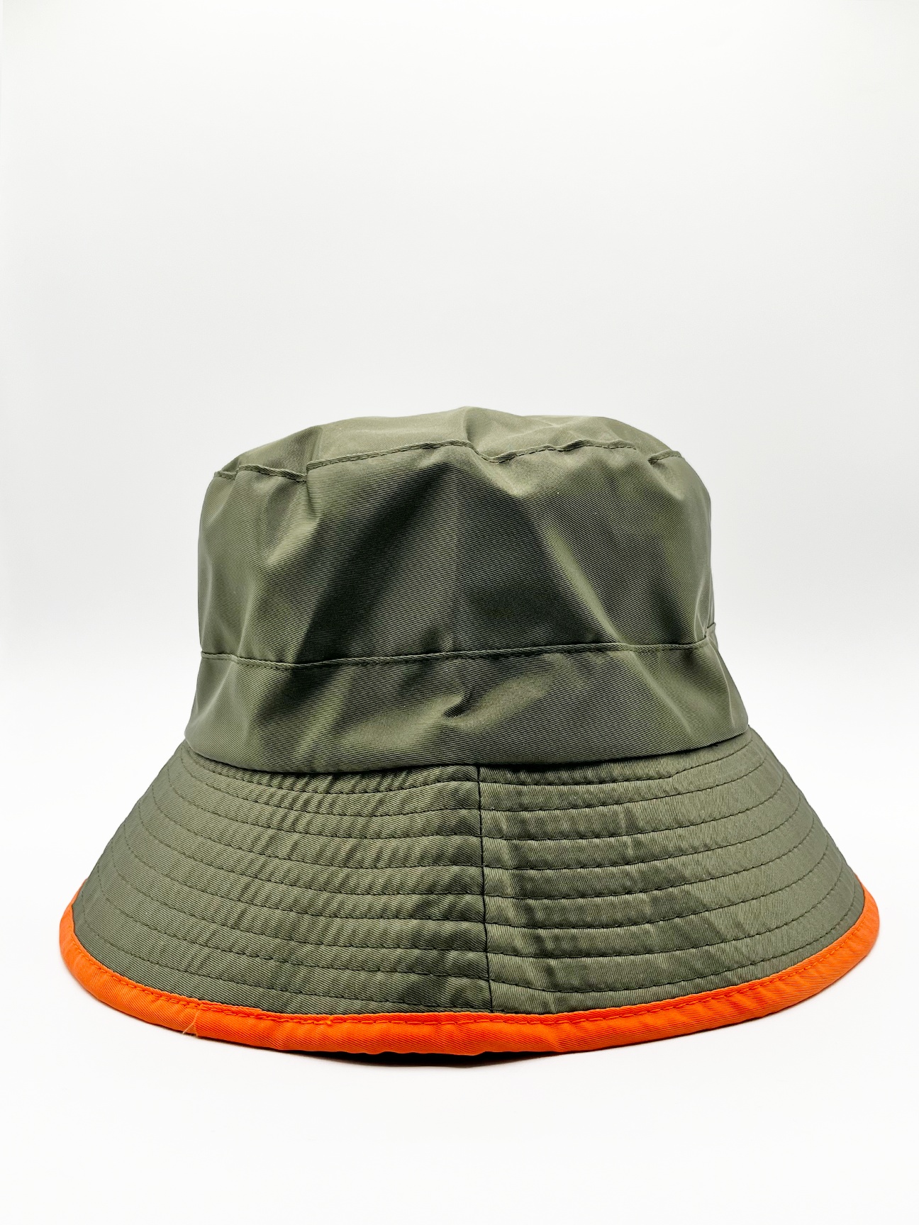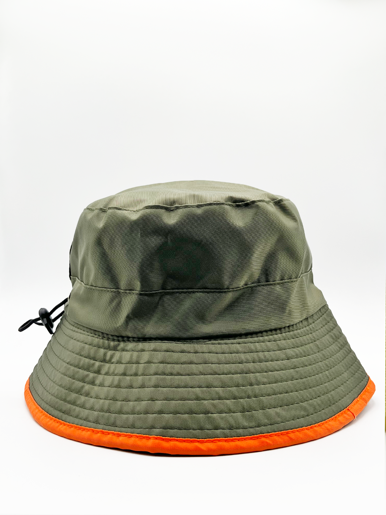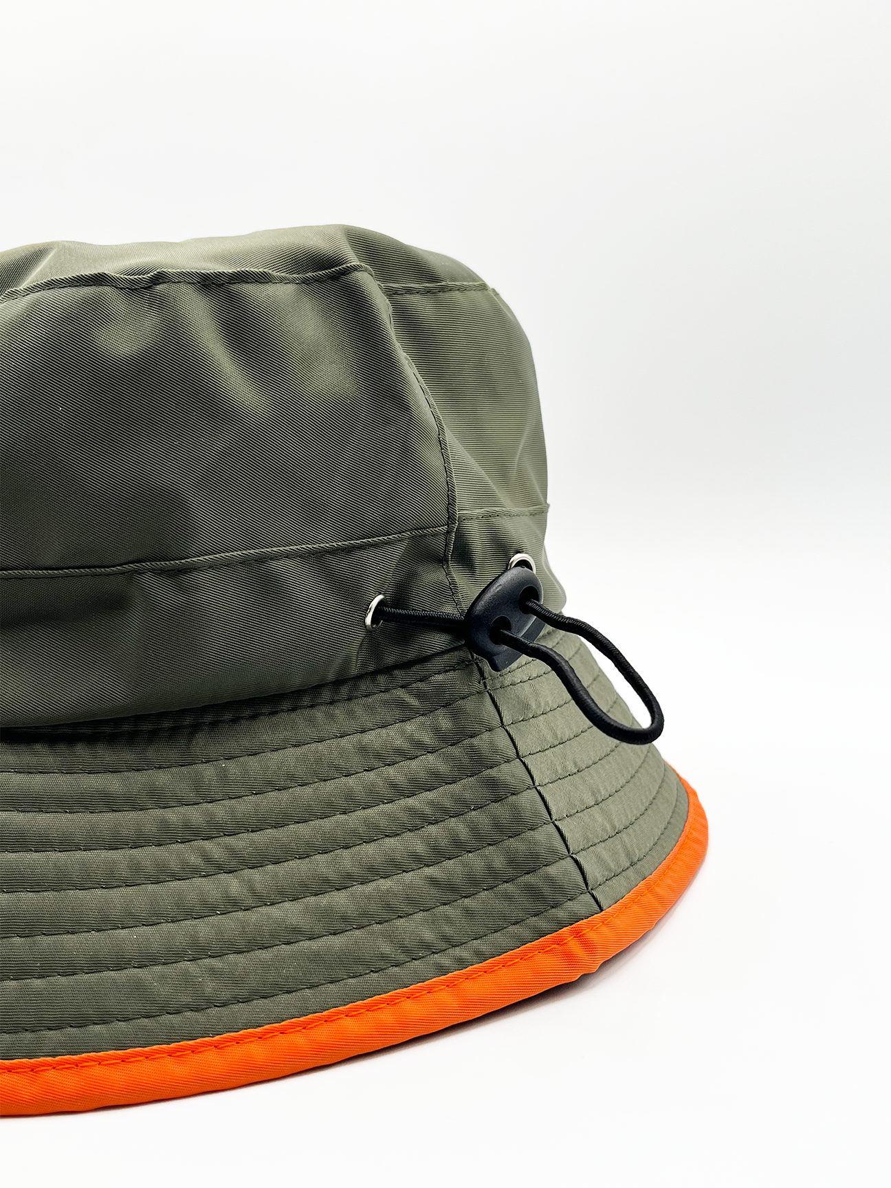 ARCHER Nylon bucket hat with contrast trim and drawstring in moss