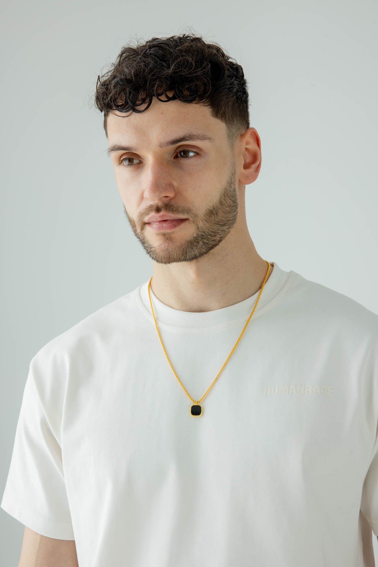 Whether worn as a statement piece for formal occasions or as a subtle accent to everyday attire, this men's gold necklace with a black pendant exudes confidence and sophistication. It serves as a timeless symbol of refined masculinity, destined to become a cherished accessory that effortlessly complements the discerning gentleman's style.