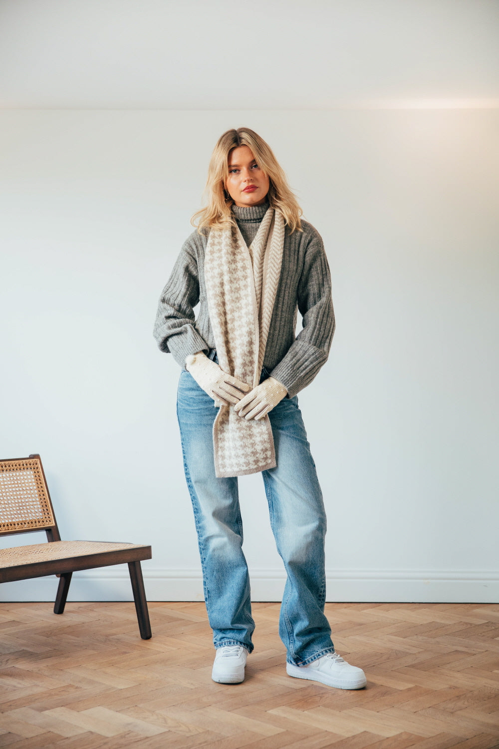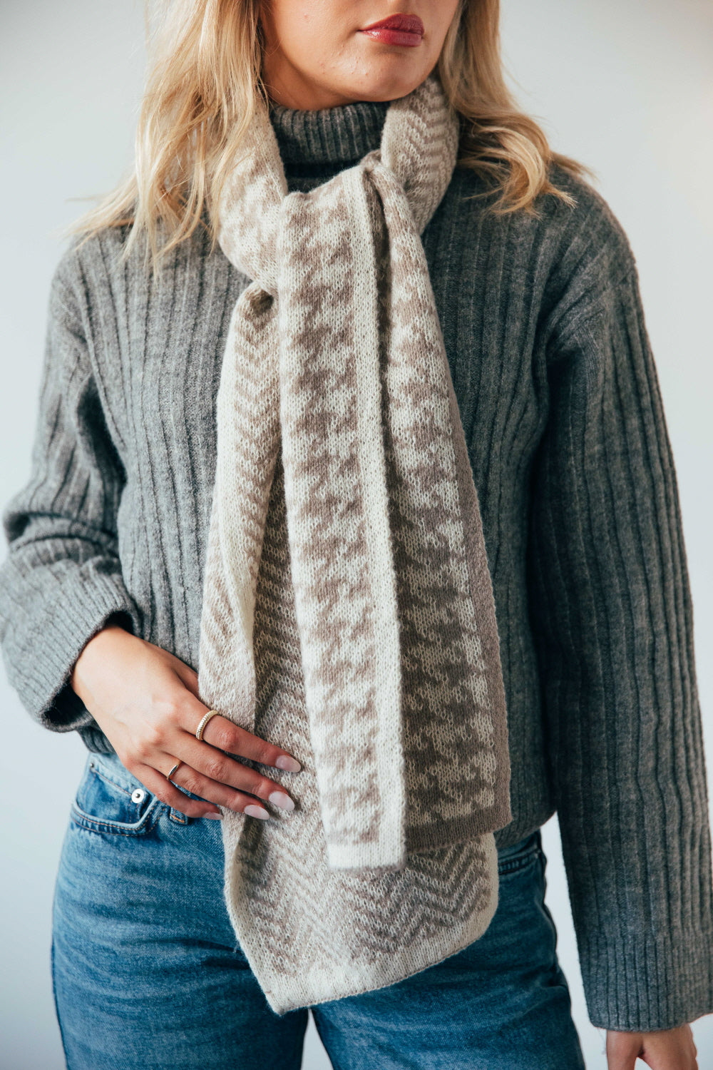 Houndstooth and Herringbone Double Sided Scarf