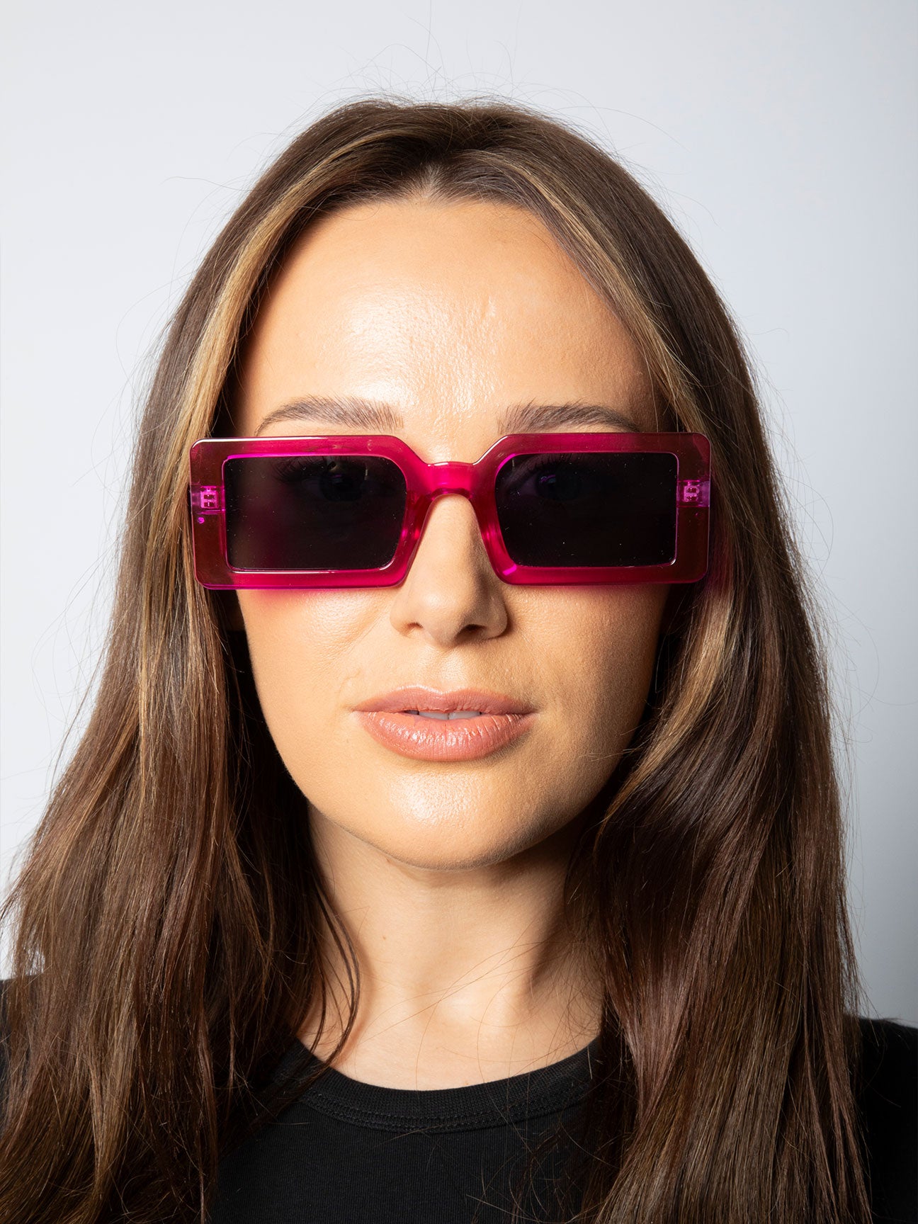 - Square Frame Sunglasses in Hot Pink with Black Lens