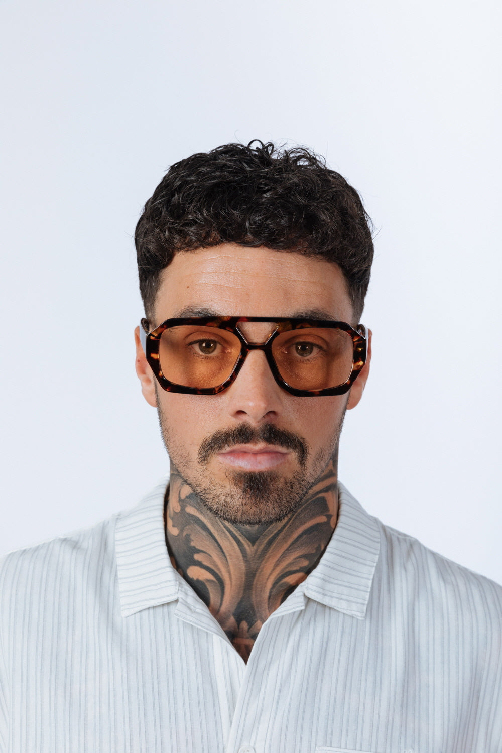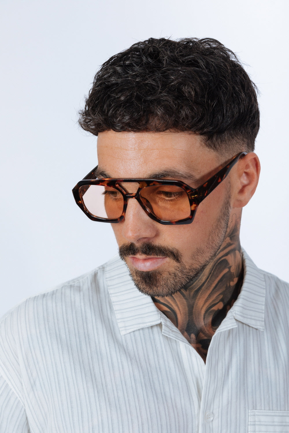 Tortoiseshell Navigator Sunglasses with Orange Lenses