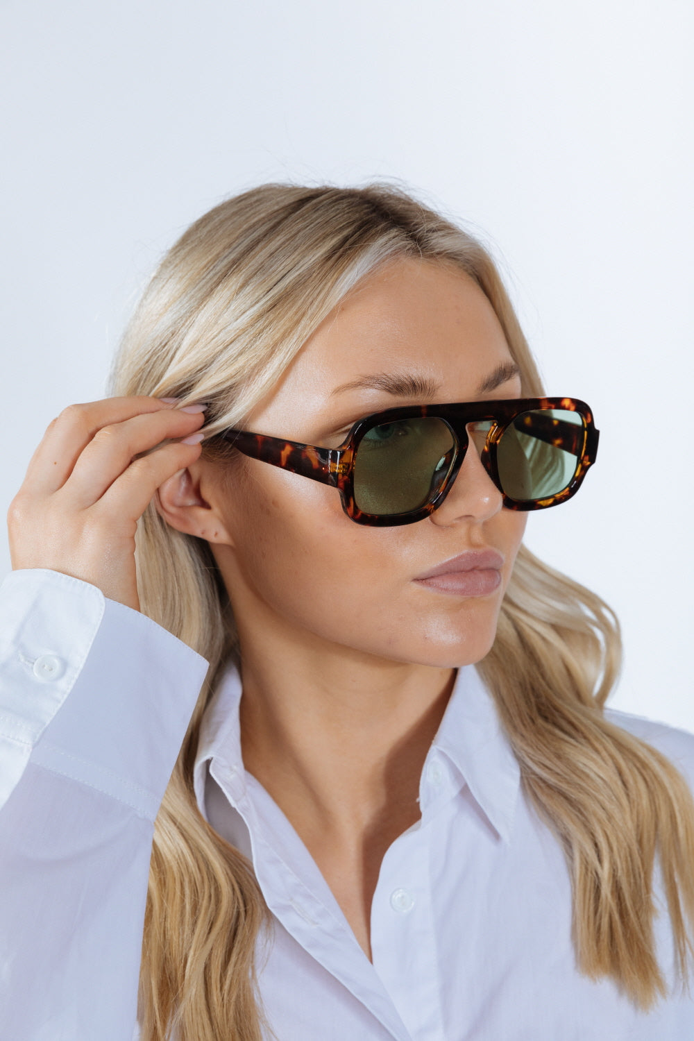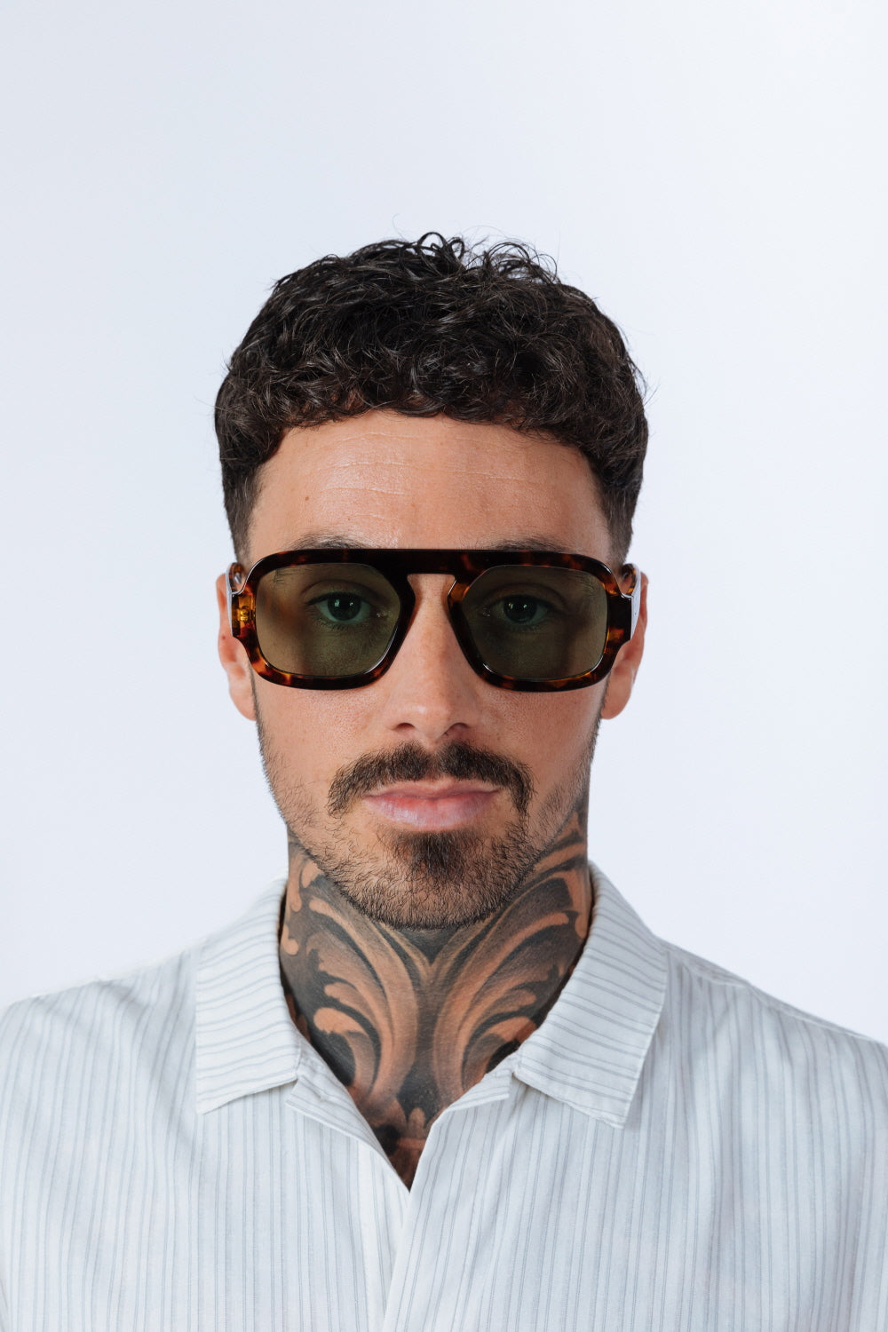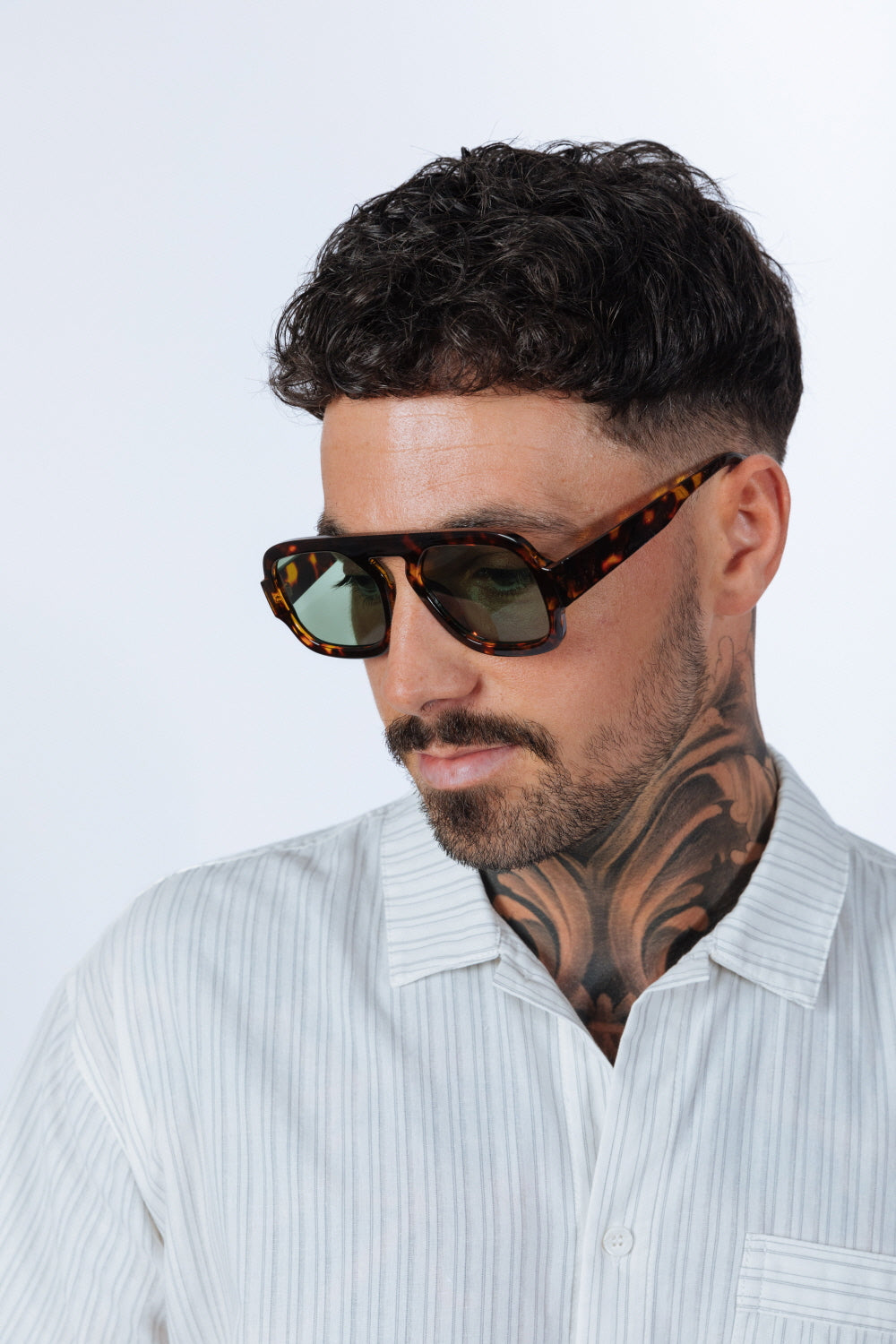 Retro Navigator Sunglasses in Green Brown Tortoiseshell