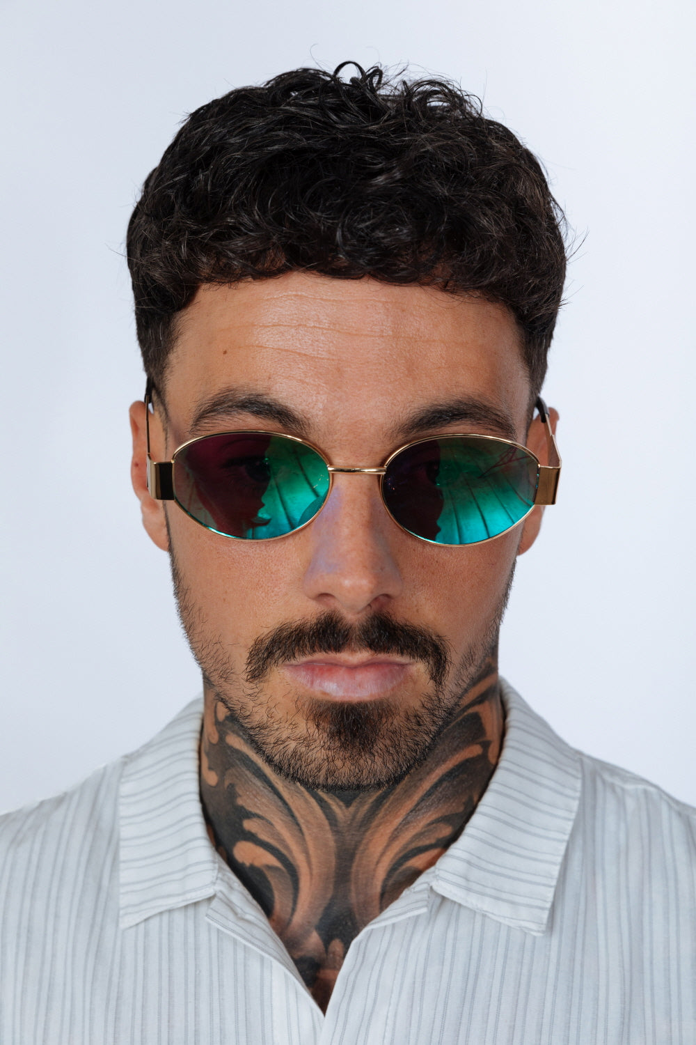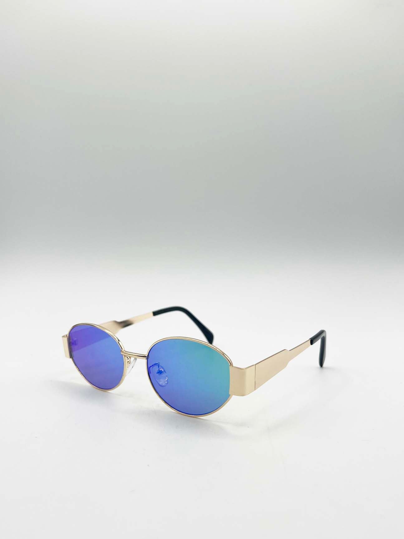 Oval Metal Frame Sunglasses in Gold Green