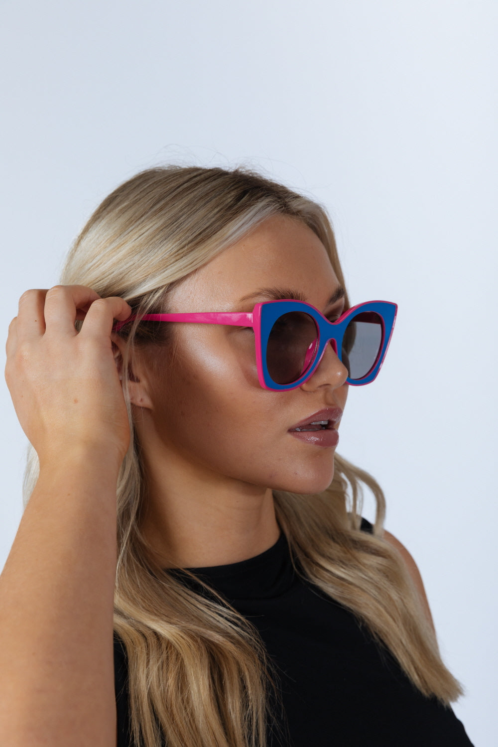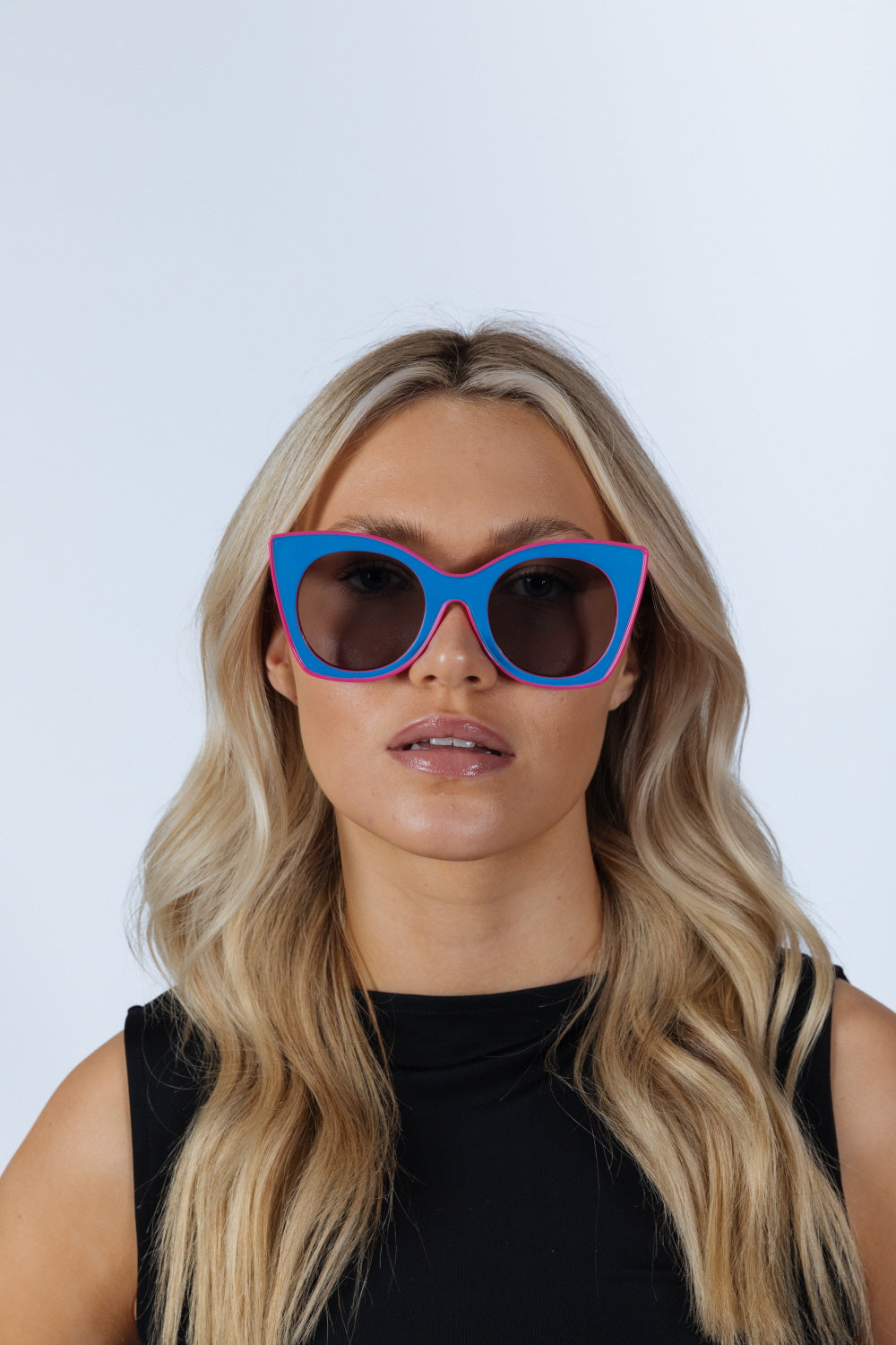 Oversized Round Cat-Eye Sunglasses in Blue Pink