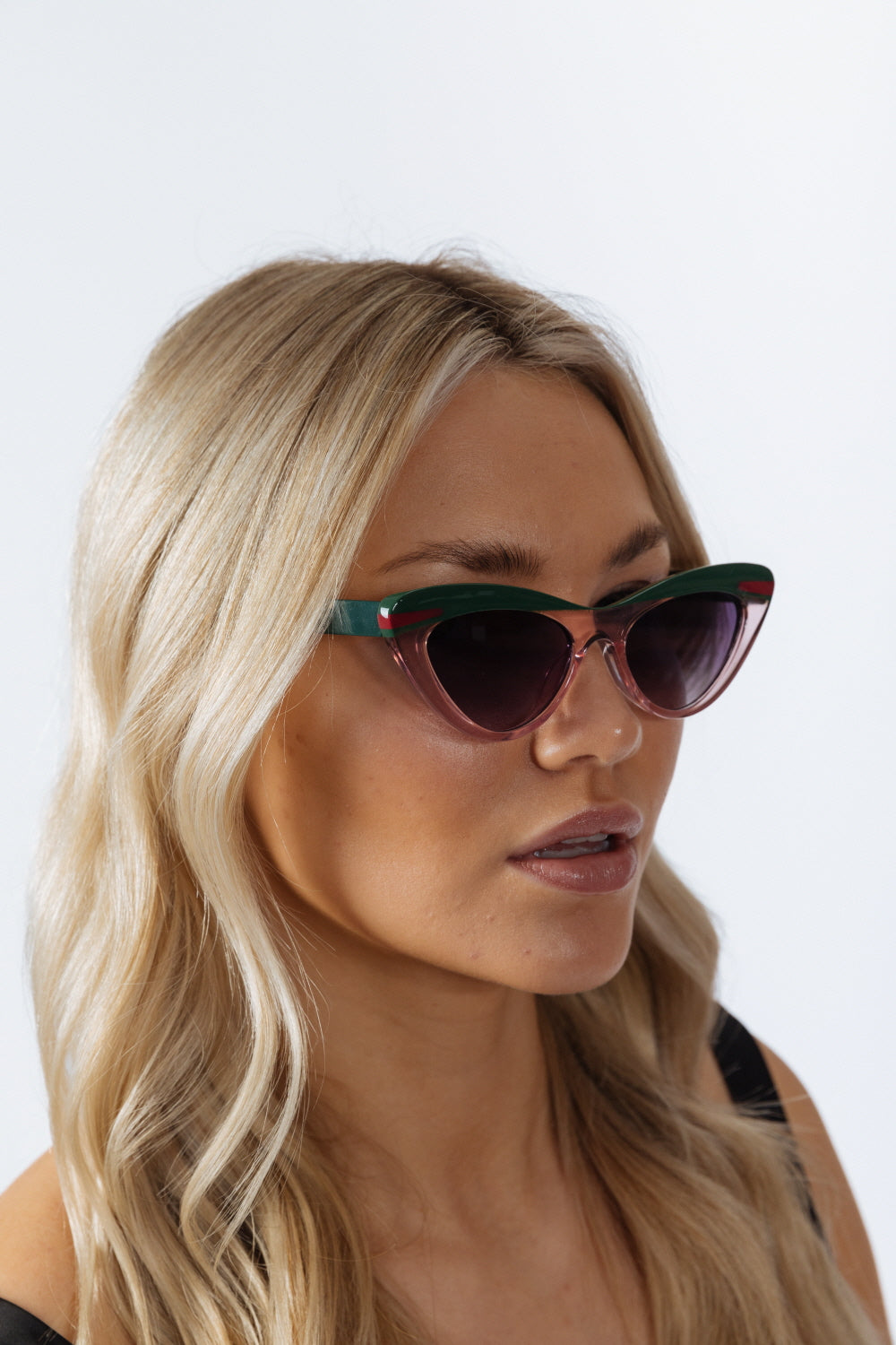 Two Tone Cat-Eye Sunglasses in Pink Green