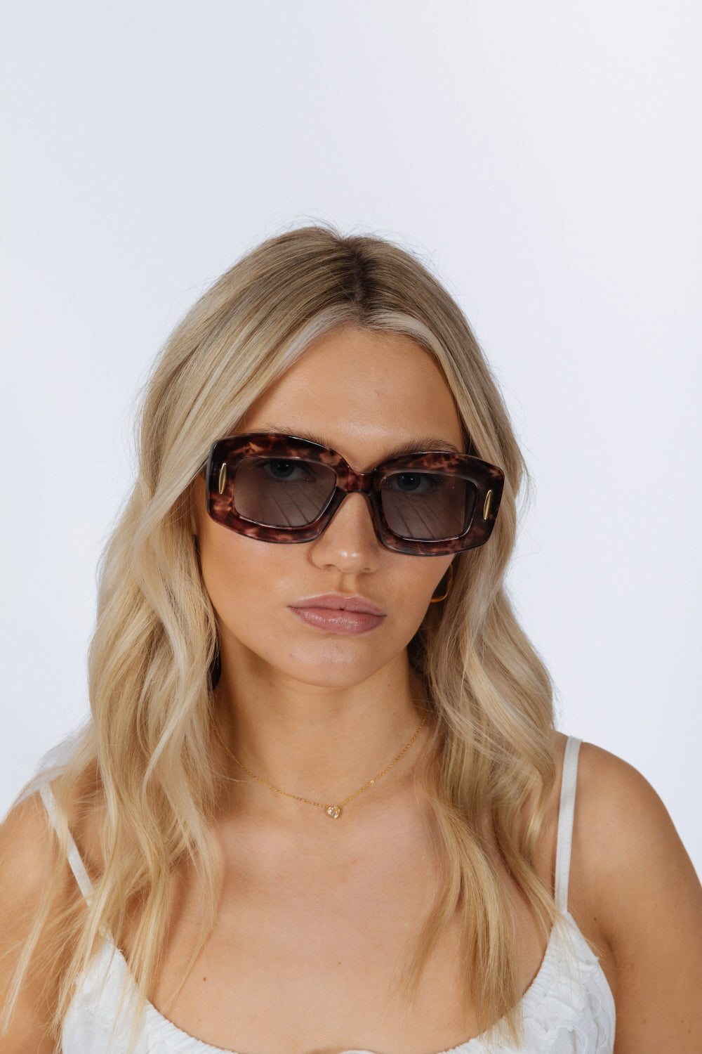 Oversized Chunky Rectangle Sunglasses in Brown multi