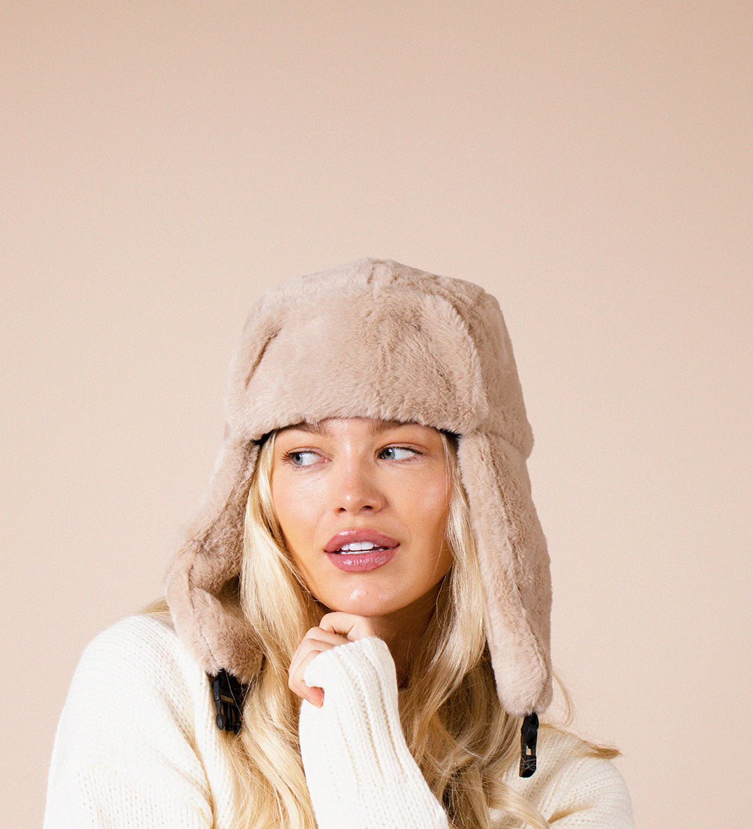 Plush Trapper Hat In Beige