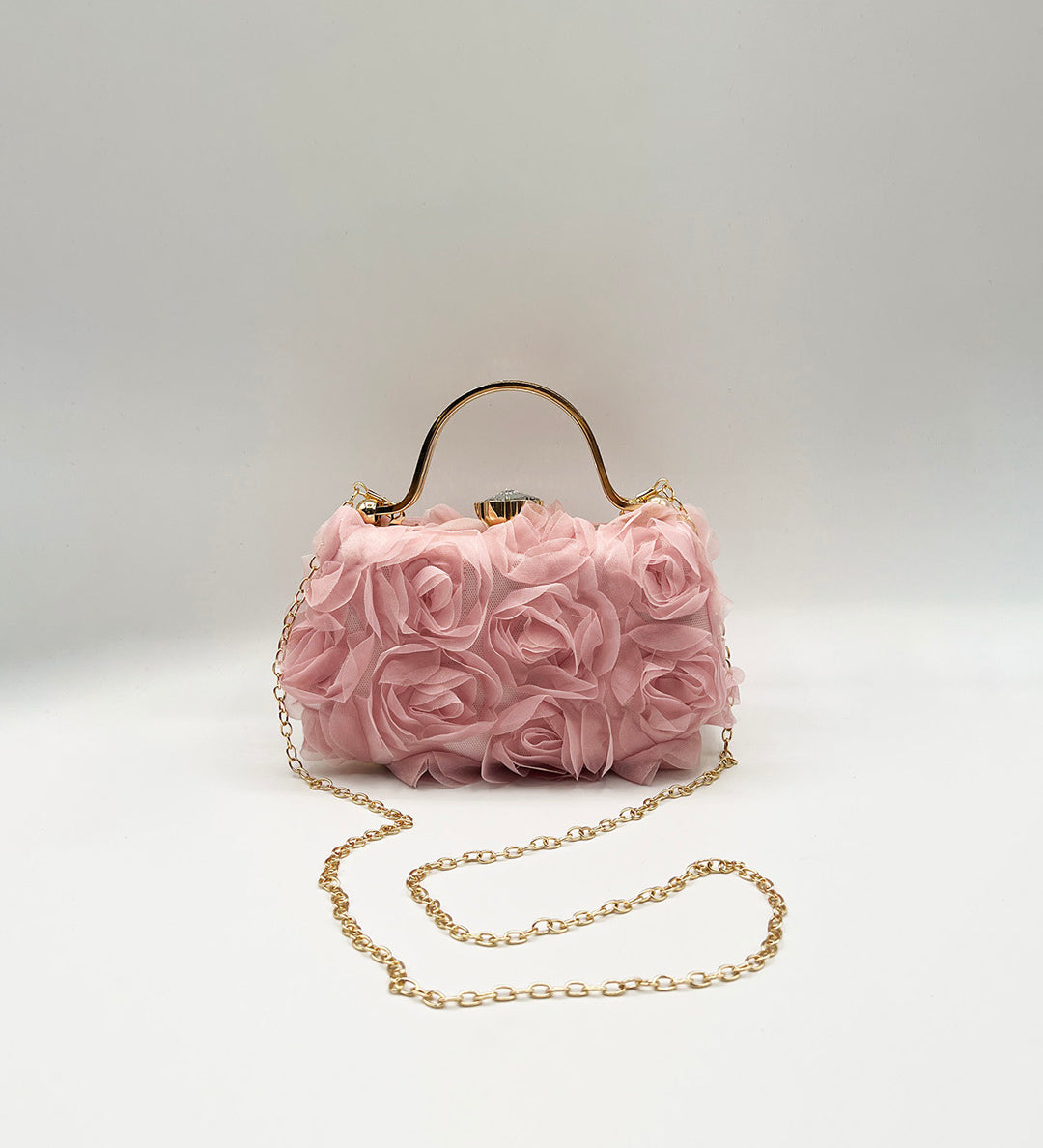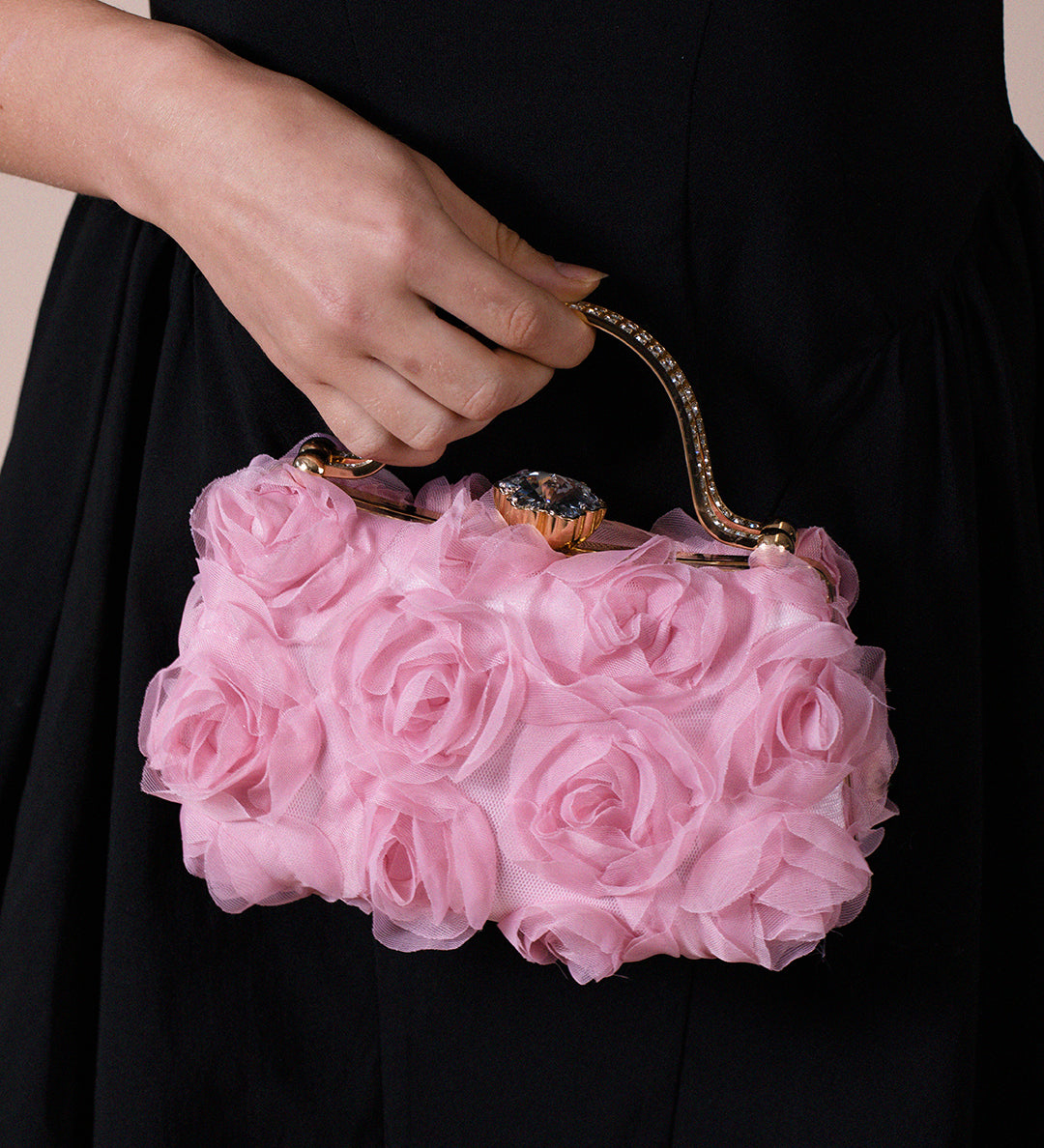 Organza 3D Rose Clutch In Pink