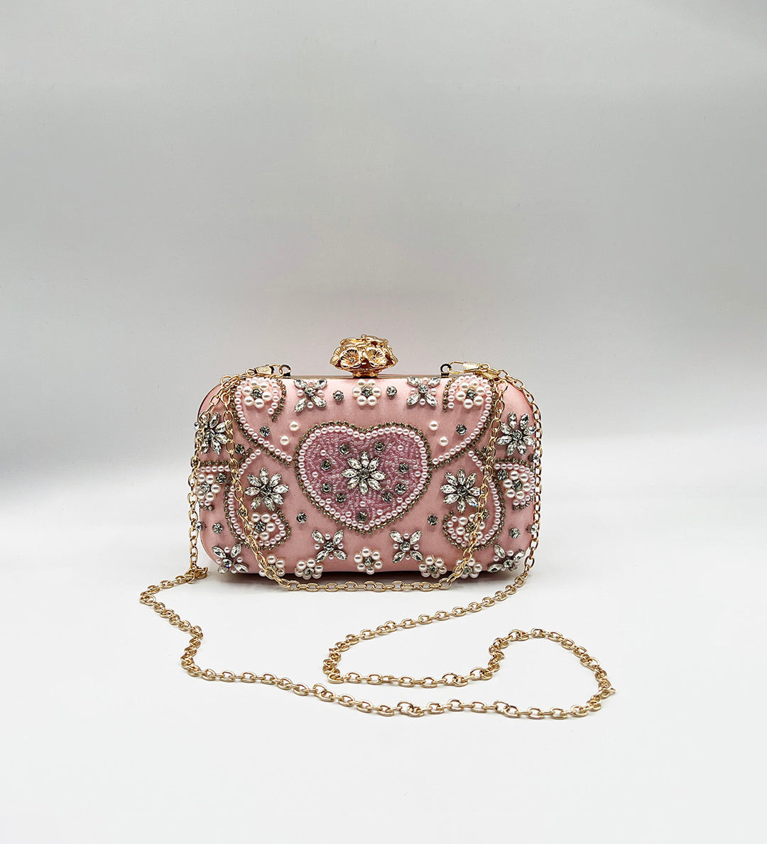 Embellished Heart Clutch Bag In Pink