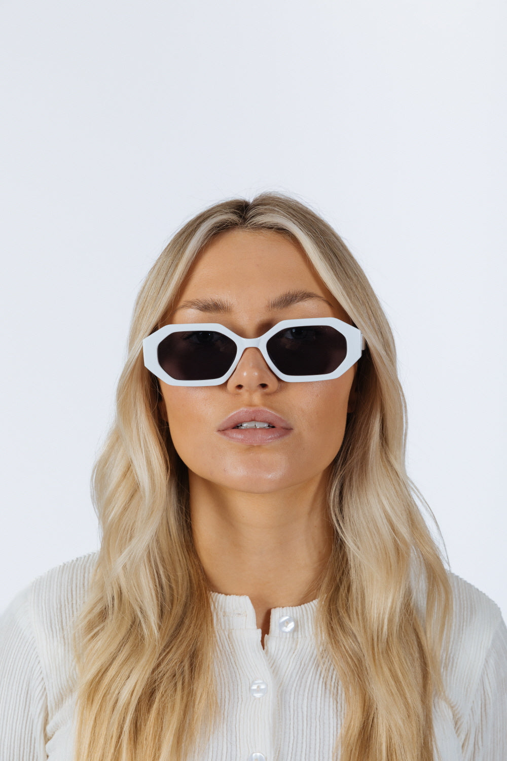 Oval Geomentric Sunglasses in White