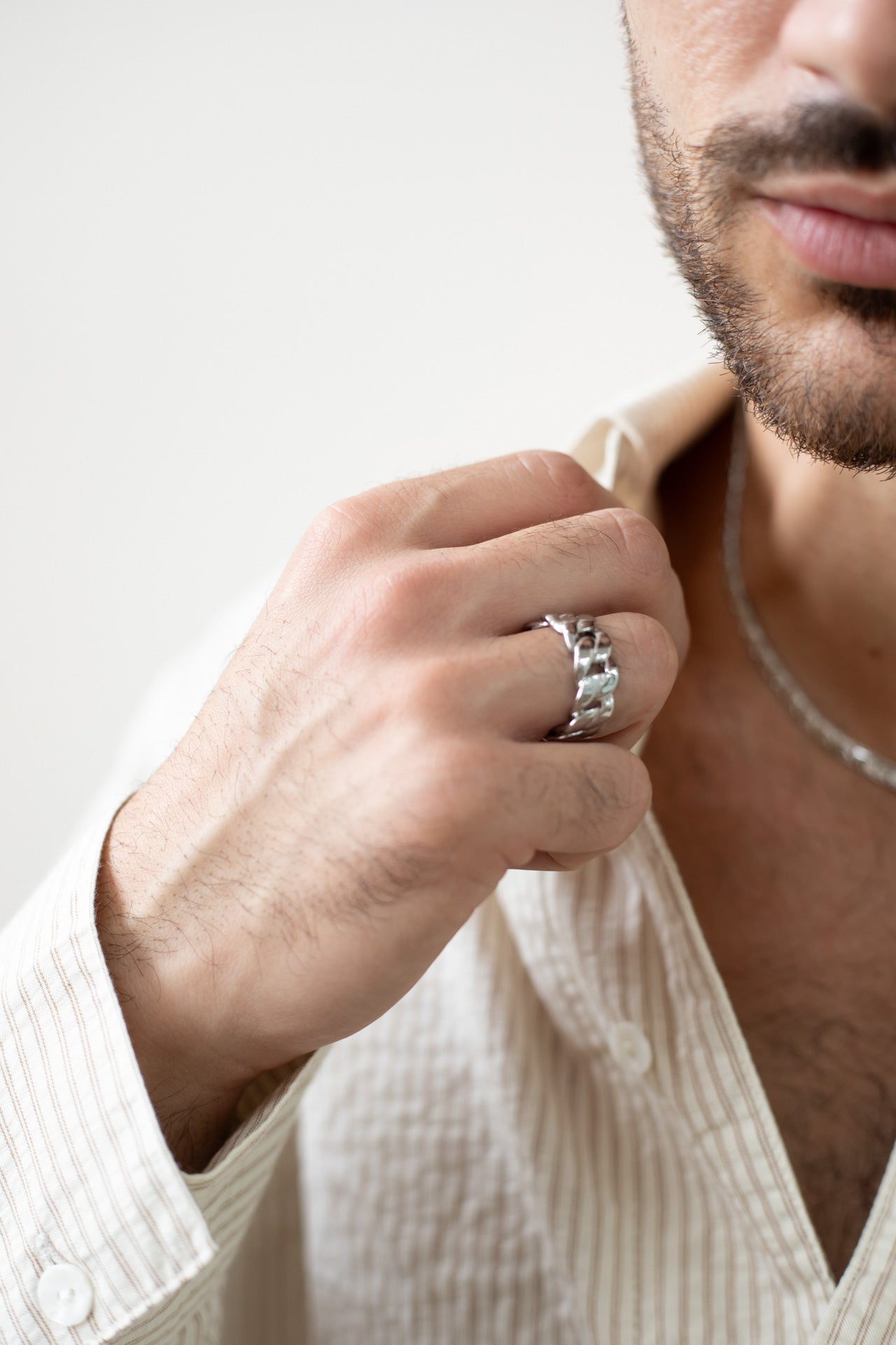 The ring's polished finish enhances its sophisticated appeal, making it a versatile accessory suitable for any occasion. Whether worn as a statement piece or a subtle nod to one's heritage, this Cuban silver ring embodies timeless style and cultural pride.