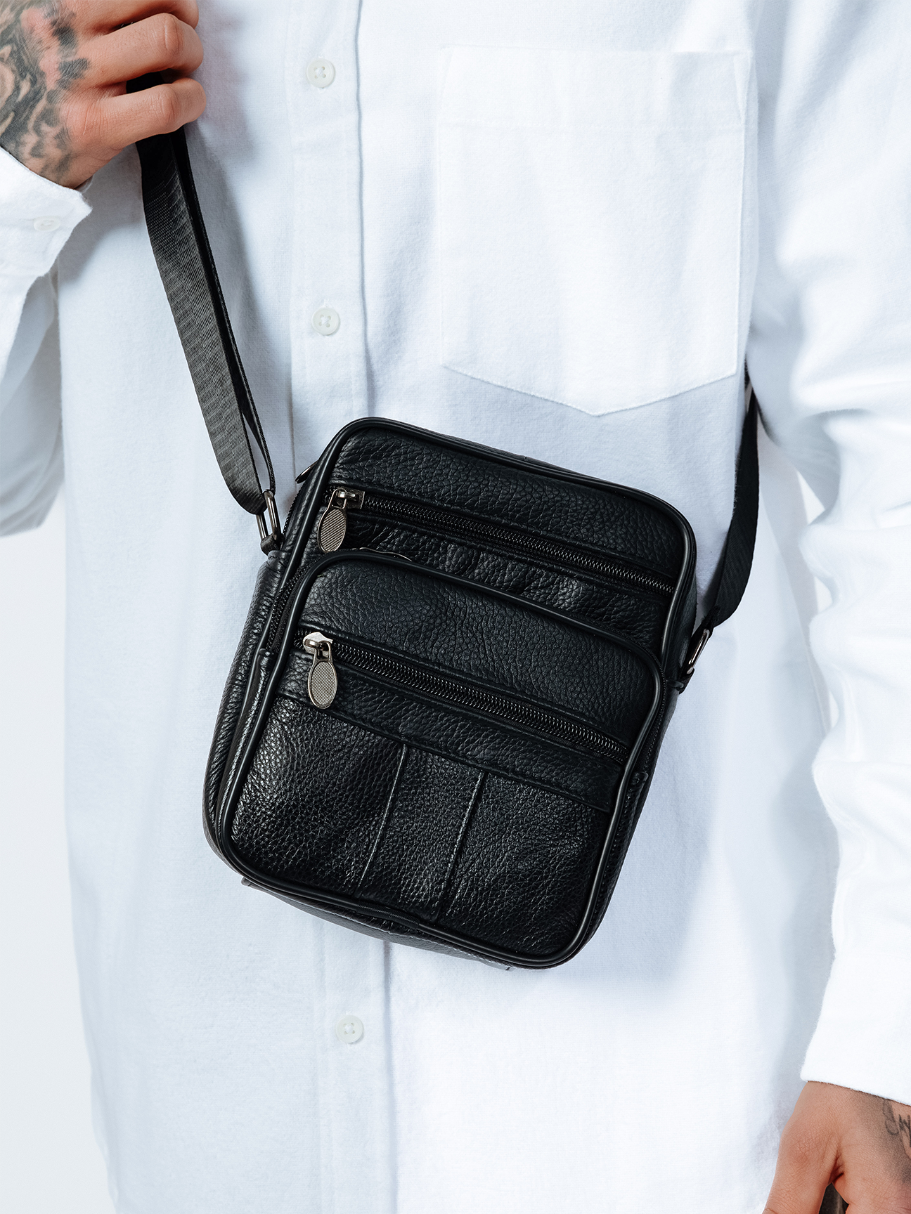 Crafted from wear-resistant genuine leather, this crossbody messenger bag is built to last. Featuring multiple compartments for easy organization and a soft cotton lining, it offers both durability and style. The adjustable strap ensures a comfortable, customizable fit for all-day wear. H:22cm L:18cm W:8cm SKU:HB350802