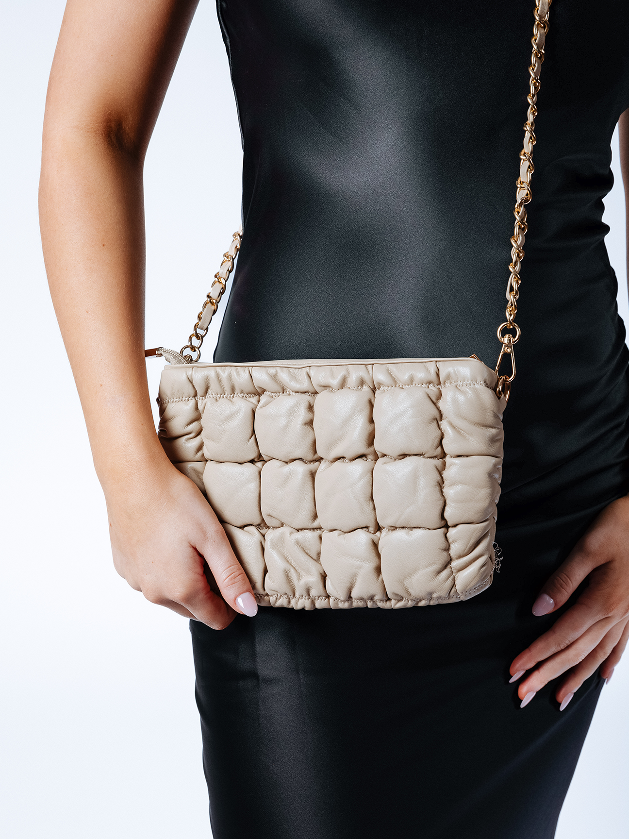 This chic bag offers a detachable long chain, allowing it to transform into a clutch for any occasion. The gold braided chain strap adds a touch of elegance, making it perfect for both casual and formal events.