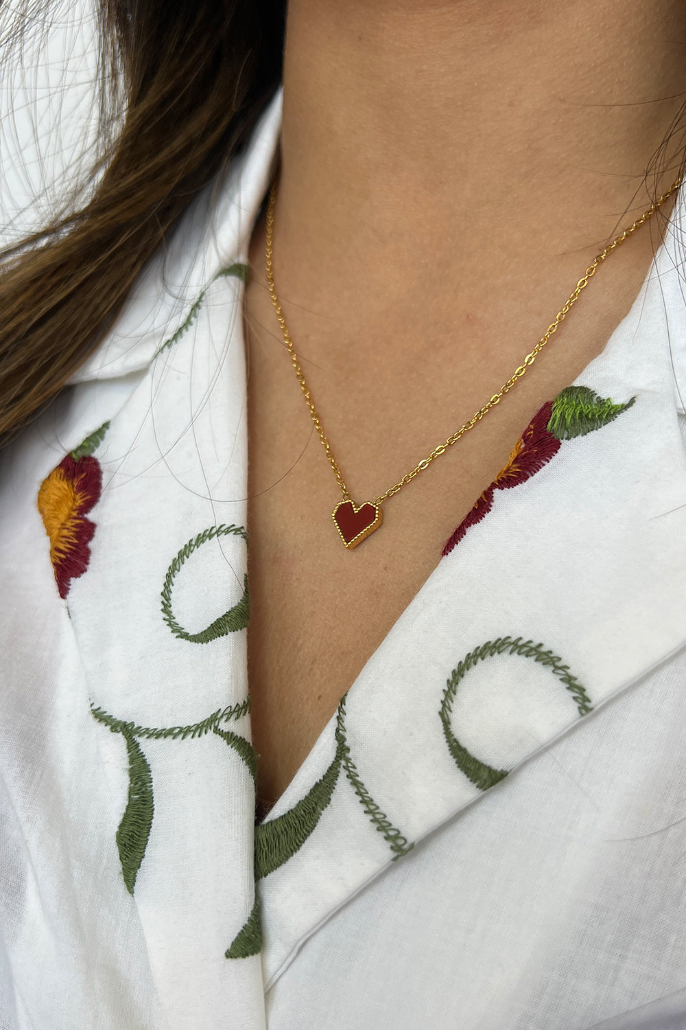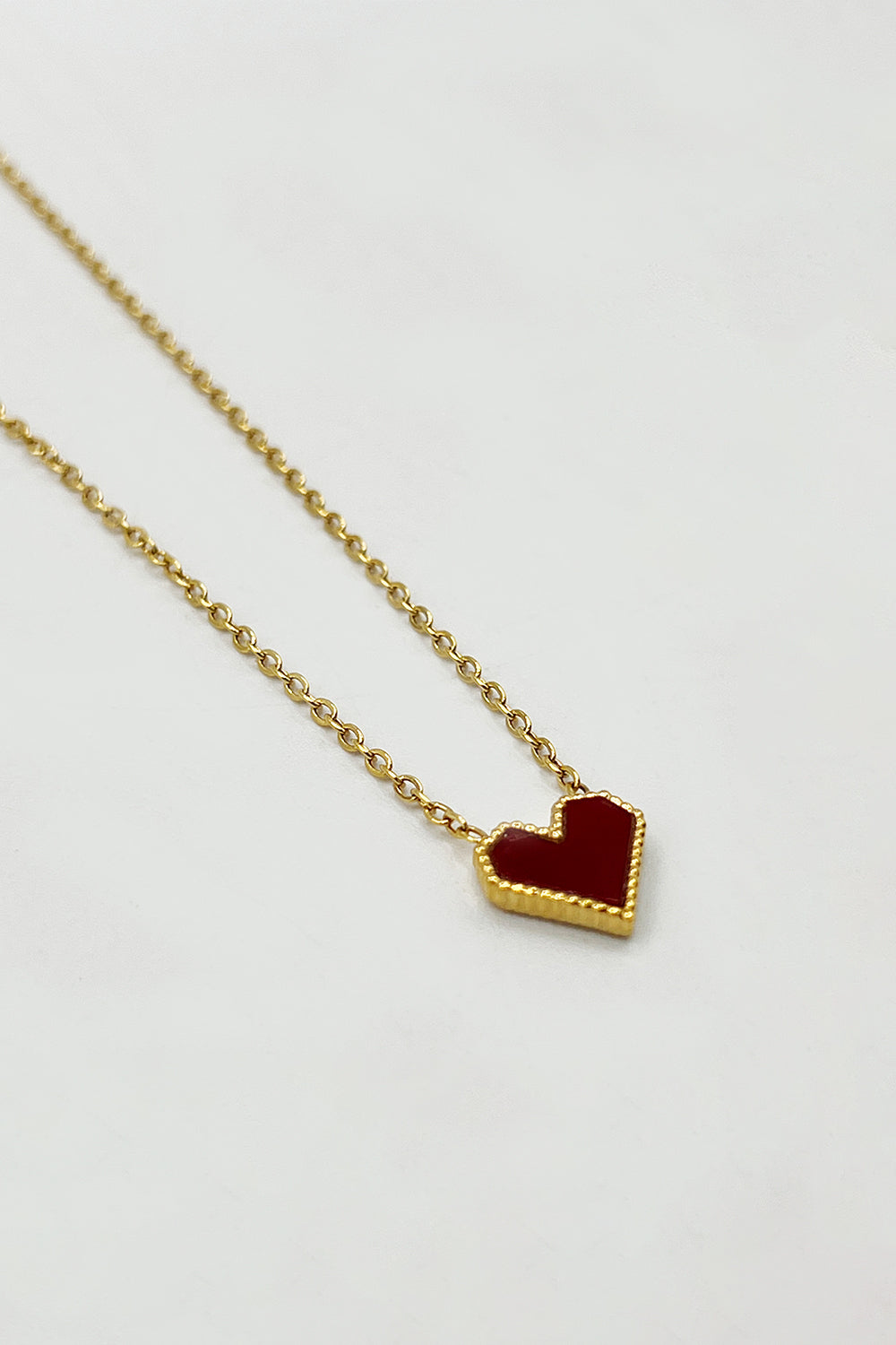 An everyday necklace with a bold pop of red. This red heart pendant is perfect for stacking or wearing solo on special occasions. A simple yet striking piece that’s sure to spark compliments.