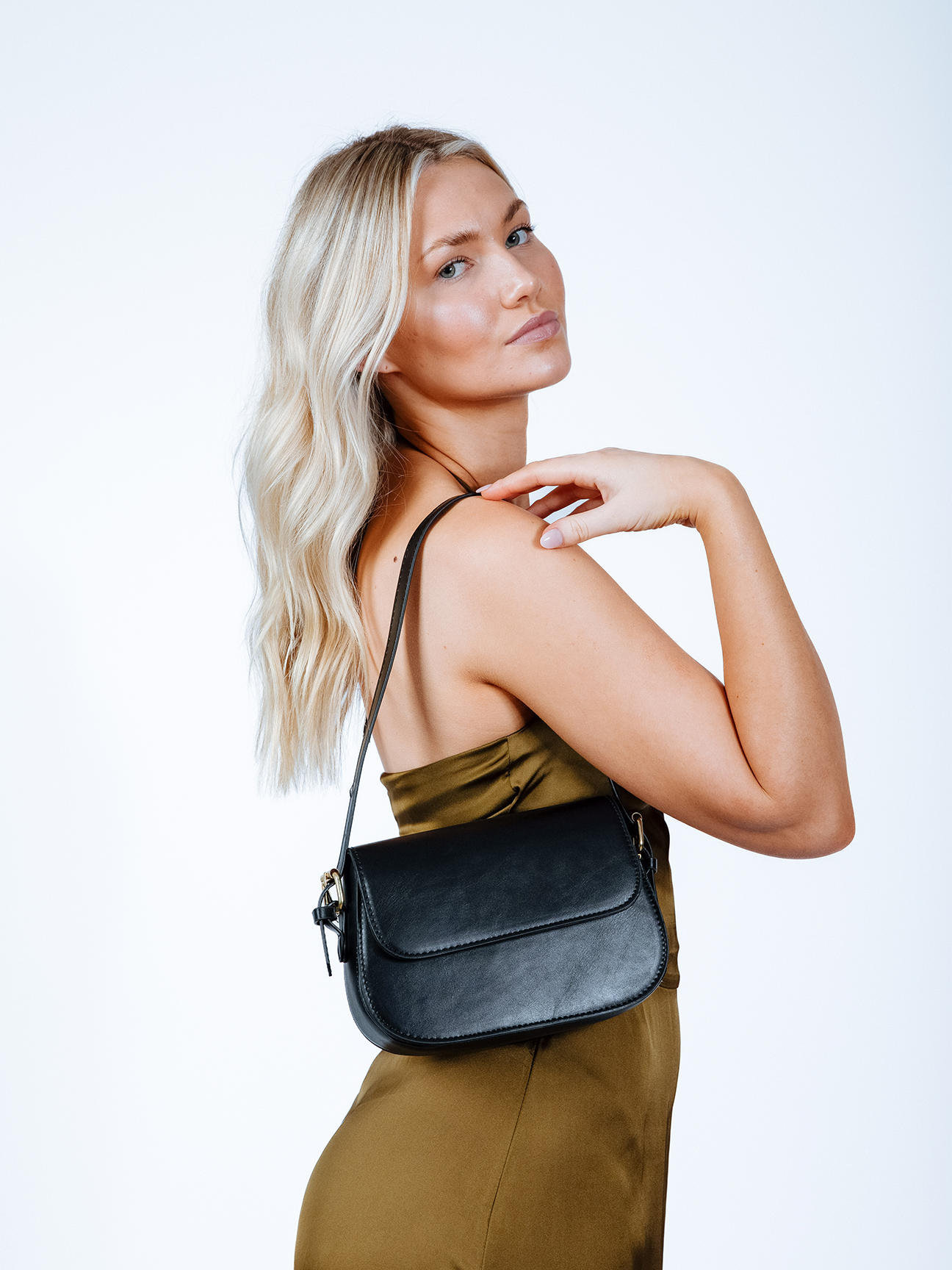 Introducing the Rounded Crossbody Bag in Black by SVNX. Featuring rounded corner details and adjustable straps, this versatile everyday essential effortlessly complements any style. Its durable, structured design ensures easy upkeep, and with two strap options—short shoulder strap or crossbody—this bag adapts to your needs, making it a must-have accessory.