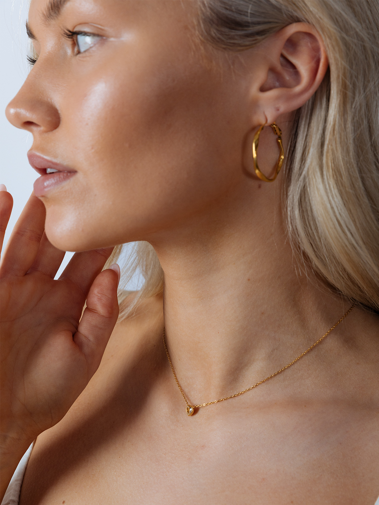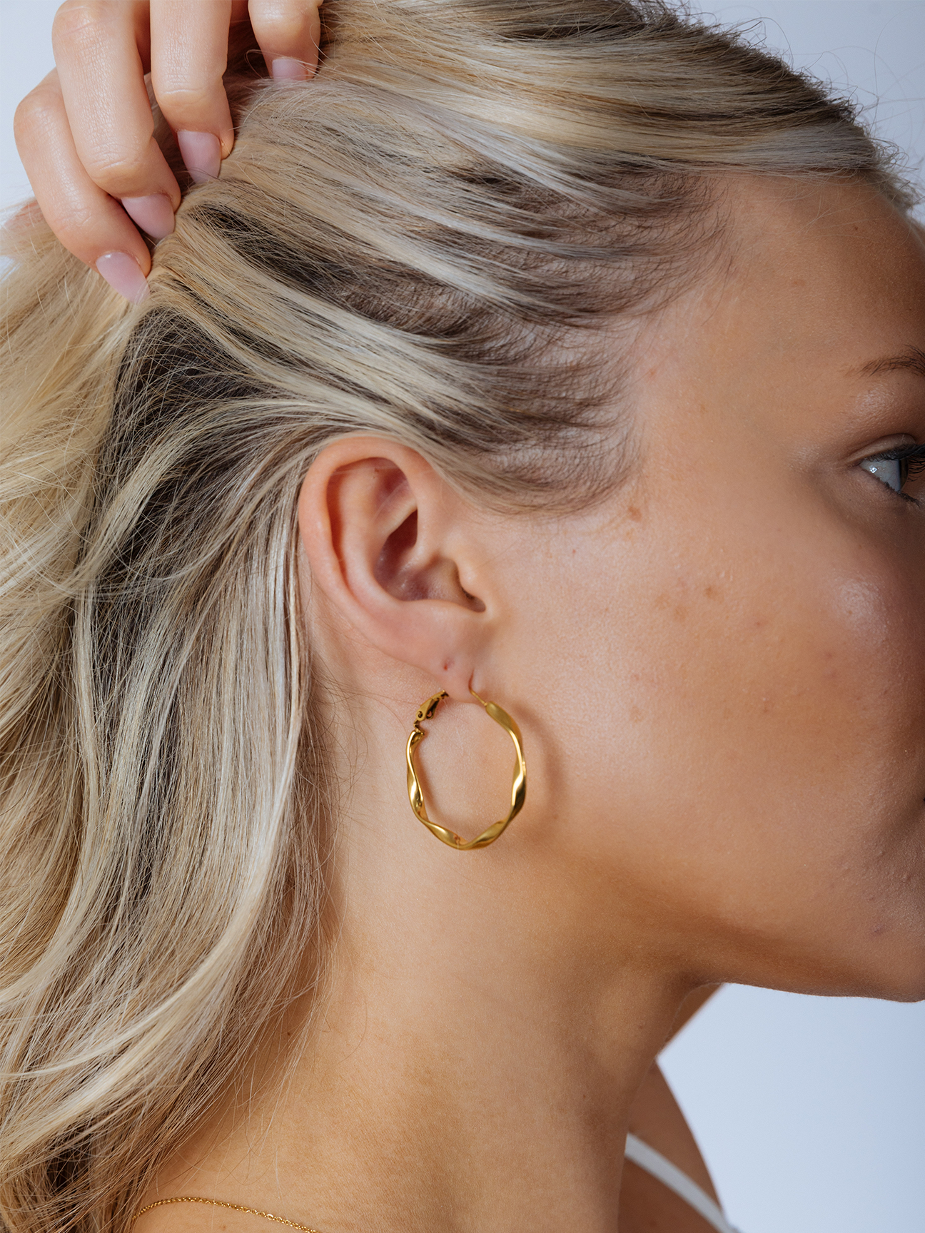 Twisted Hoops – the perfect everyday earring to elevate any look. Whether dressing up or down, these hoops add a subtle yet stunning touch of elegance to any outfit, making them versatile for any occasion.