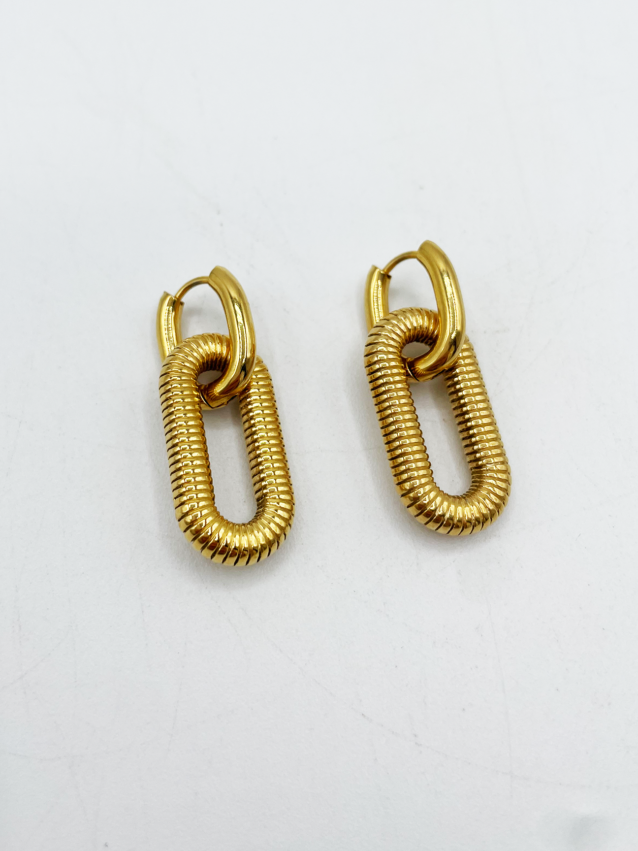 Ribbed Oval Hoop Earrings in Gold