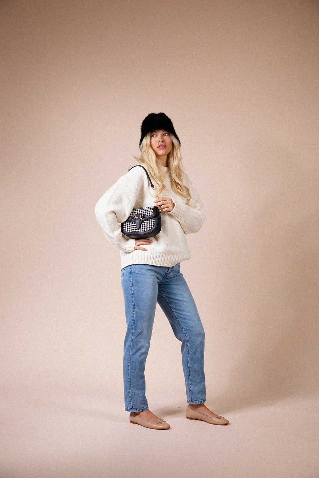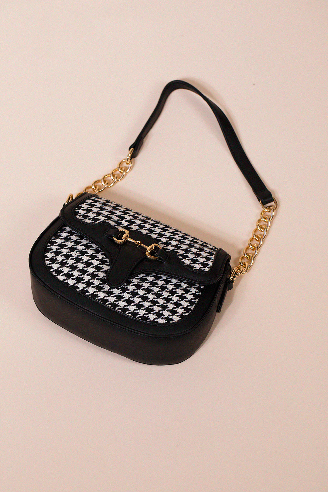 Versatile everyday bag with classic houndstooth print—stylish enough to dress up, casual enough to dress down. Perfect for any occasion, from errands to evenings out.