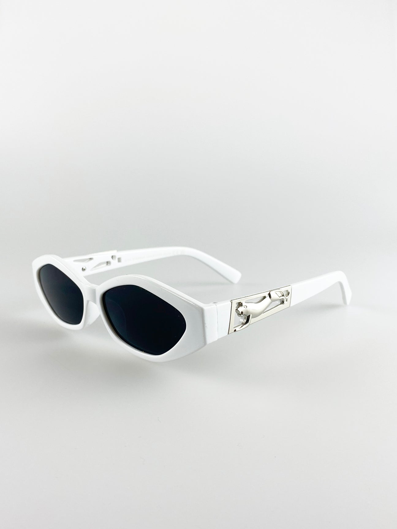 Angular Cateye Sunglasses With Metal Panther Badge