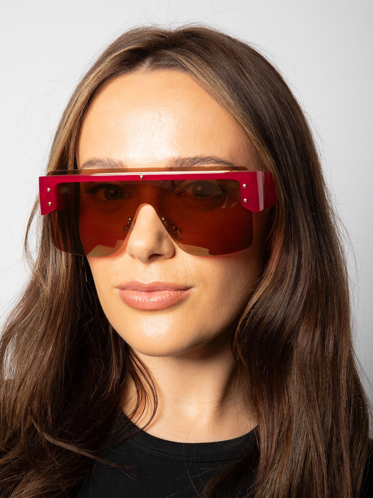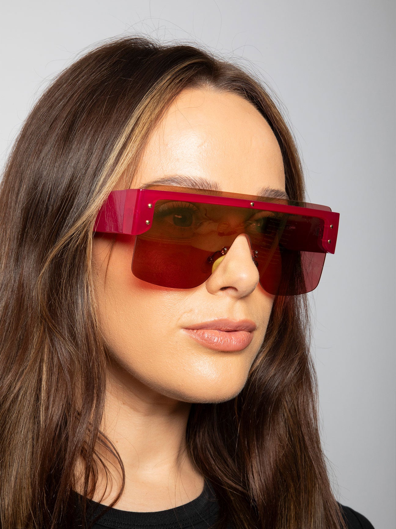 • Oversized Flat Top Sunglasses with Mirrored Lens