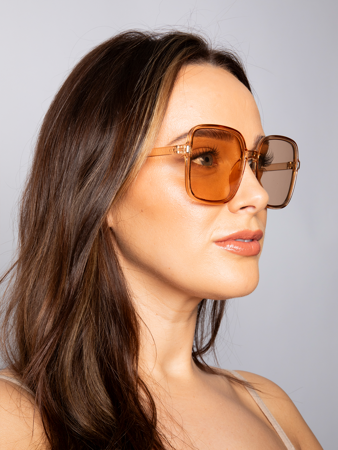 • Oversized Lightweight Square Frame Sunglasses in Light Brown