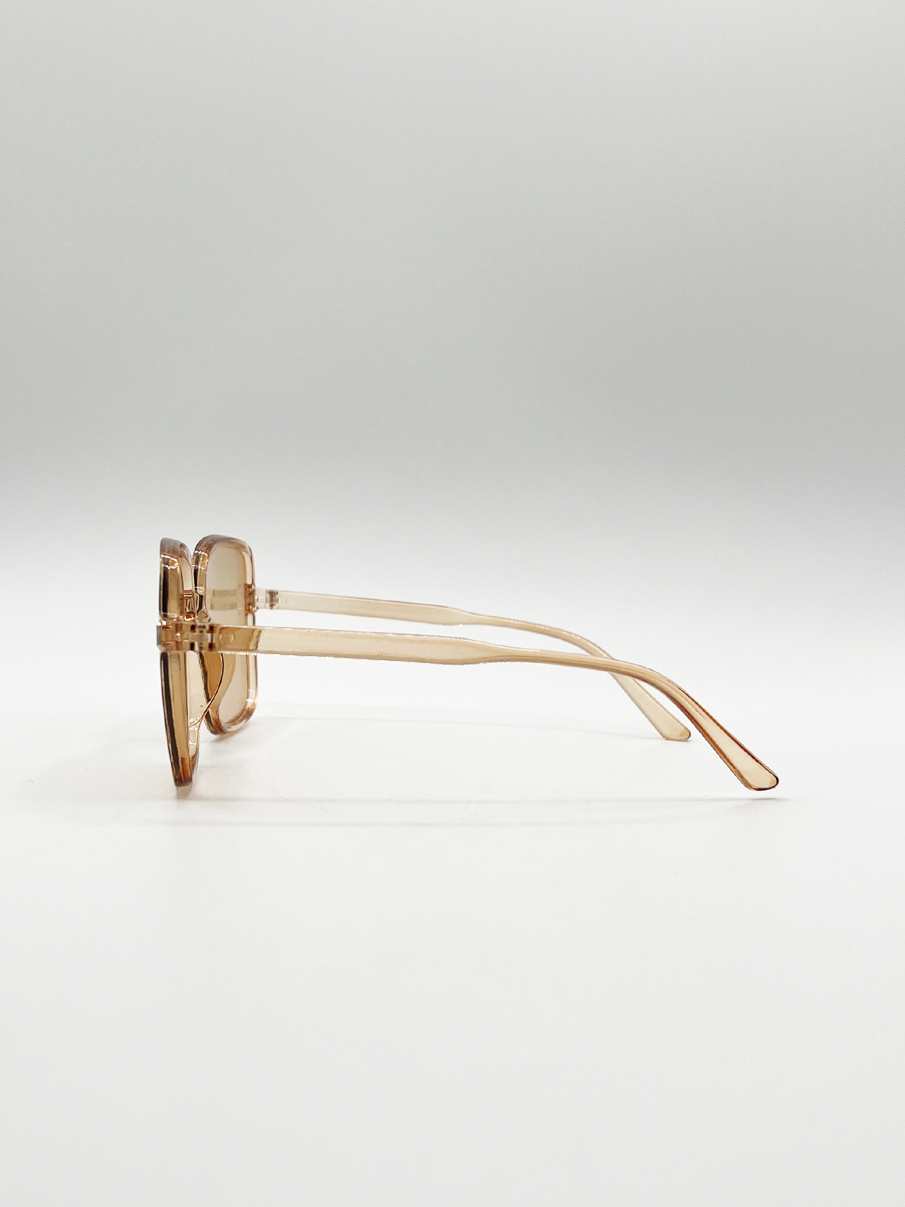 Oversized Lightweight Square Frame Sunglasses in Light Brown
