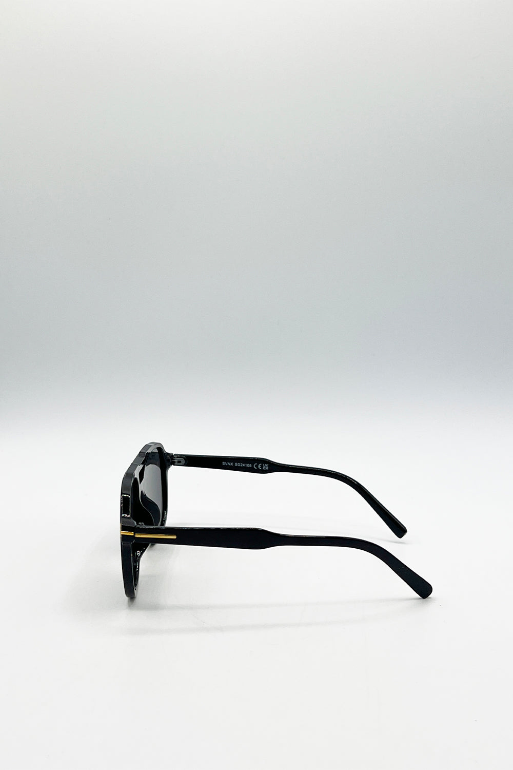 These bold sunglasses feature a commanding navigator frame in classic black, paired with vibrant orange lenses. Combining a striking look with modern functionality, they’re perfect for making a dynamic statement while providing superior sun protection. All our sunglasses are FDA approved.