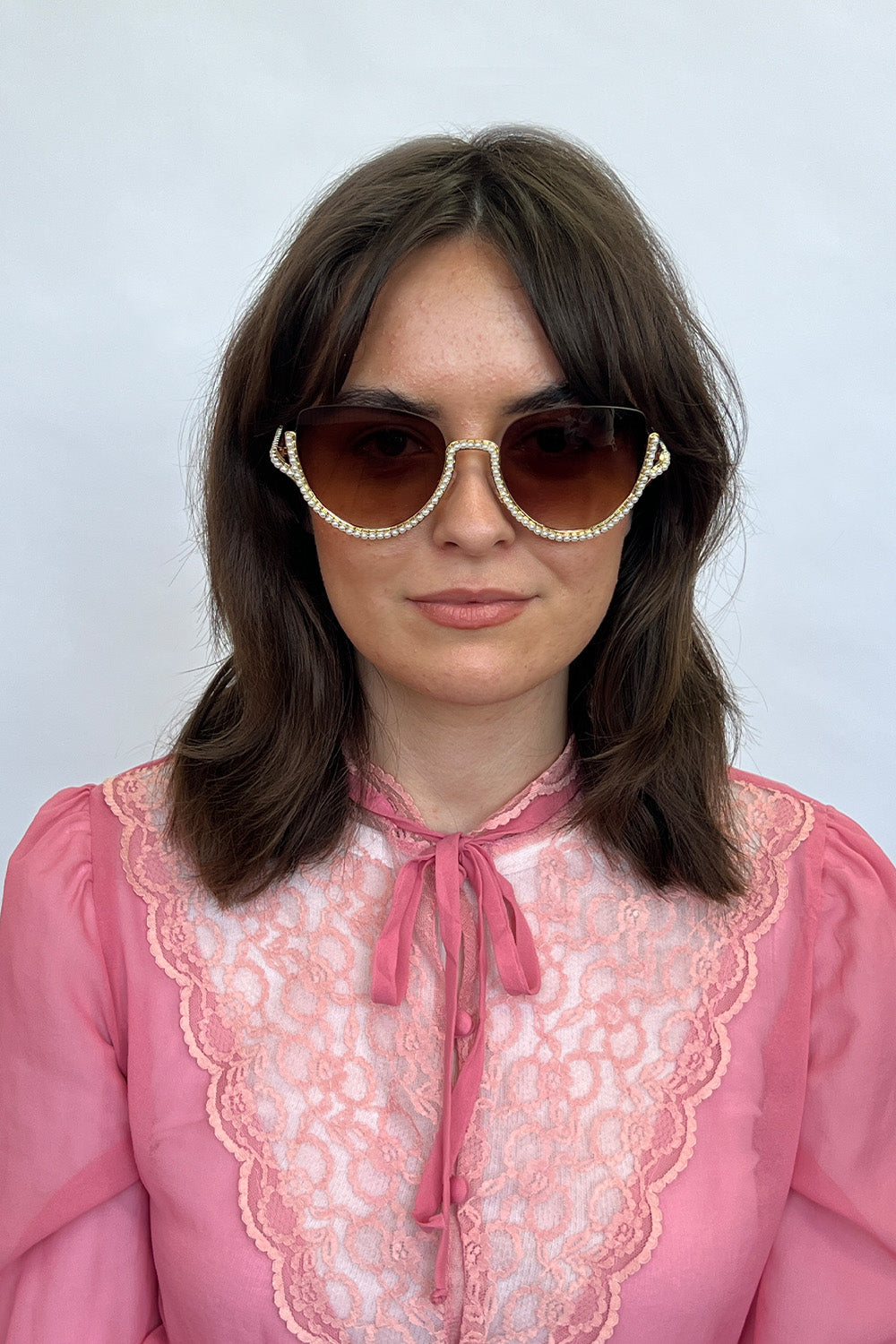Upper Rimless Pearl Sunglasses in Gold Brown