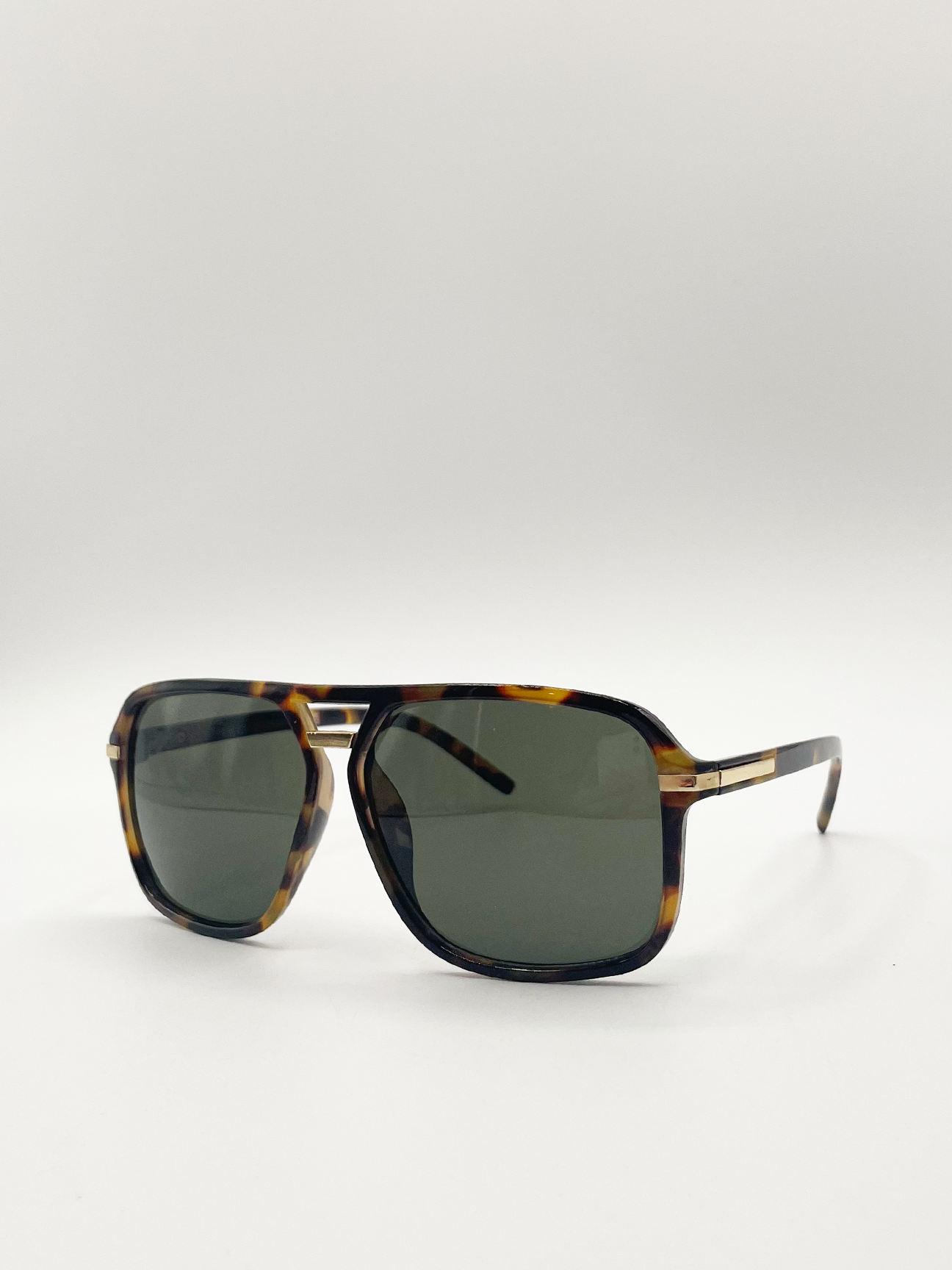 Tortoiseshell Navigator Sunglasses with Green Lenses