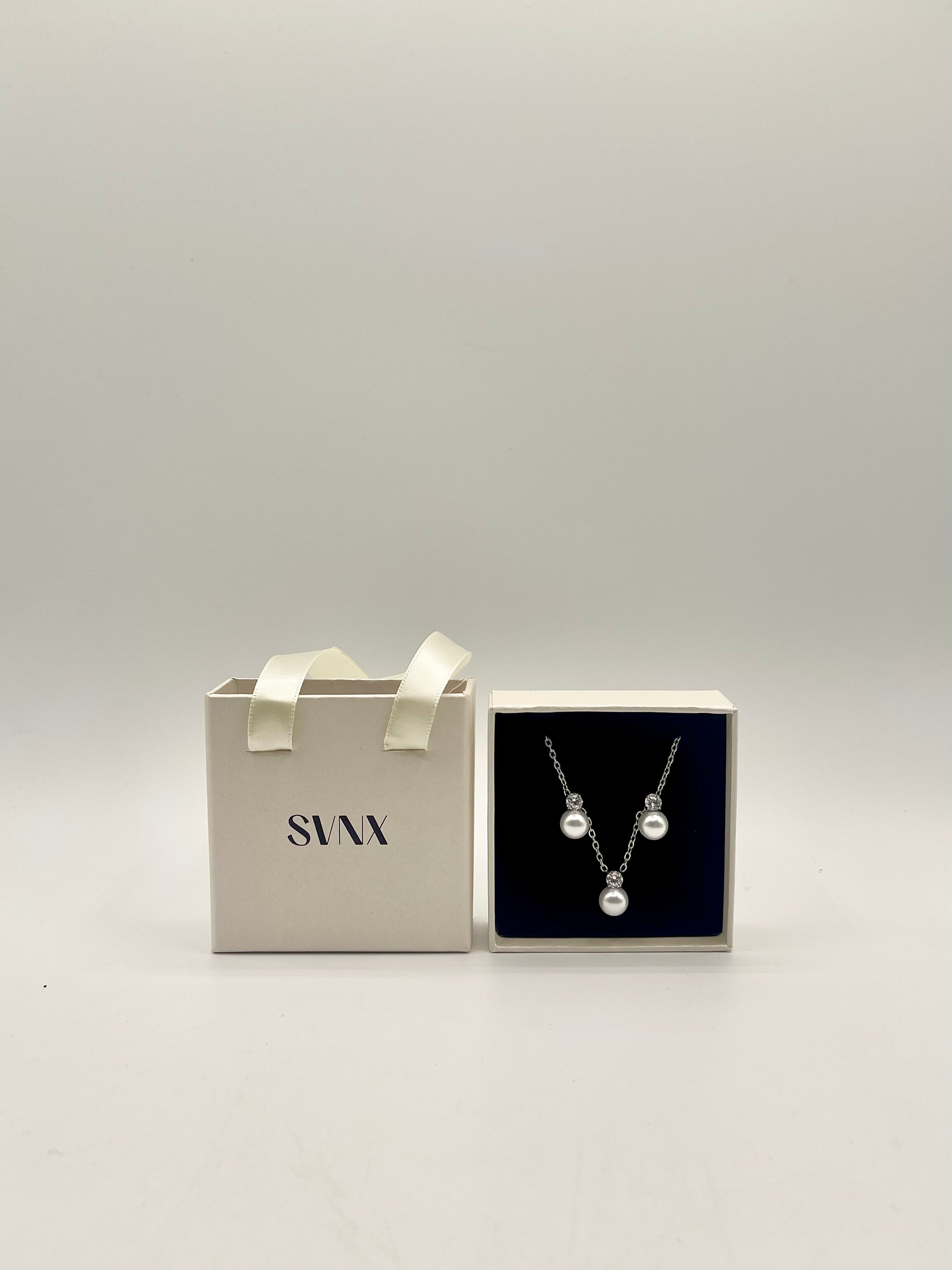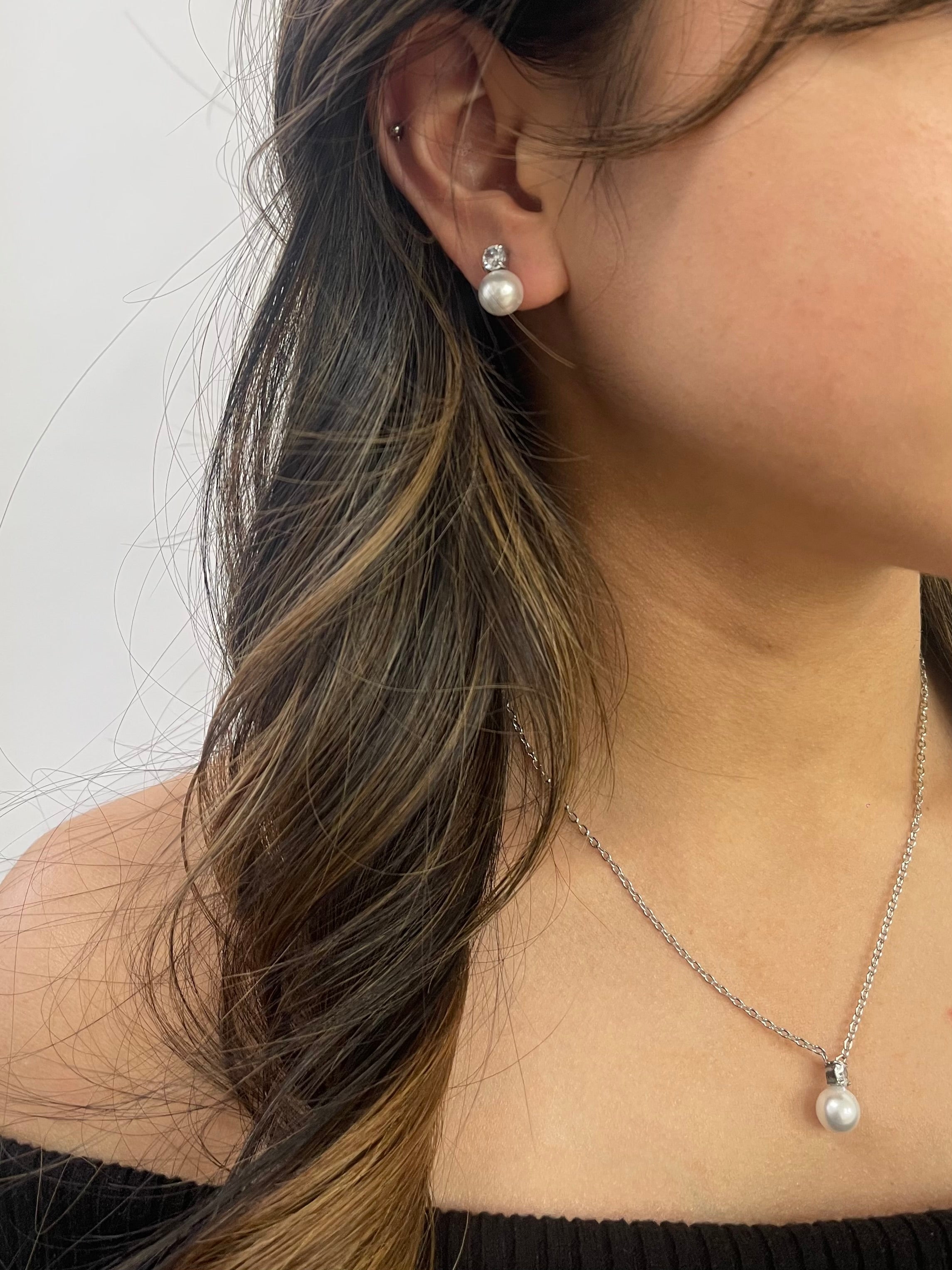 Pearl Diamante Earrings & Necklace Set in Silver