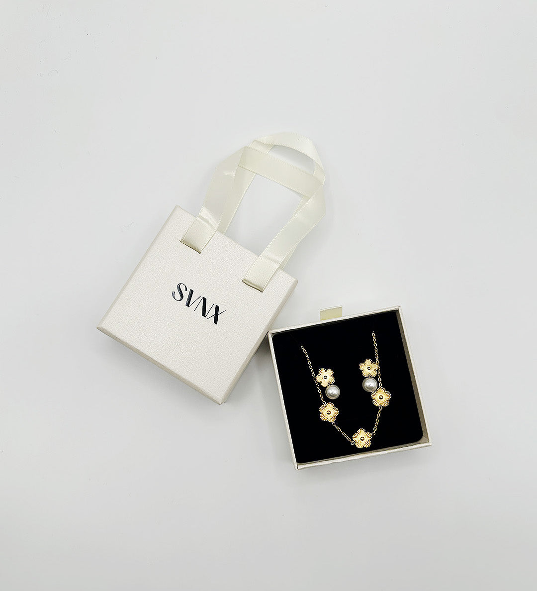 Floral Pearl Stud Earrings & Bracelet in Gold