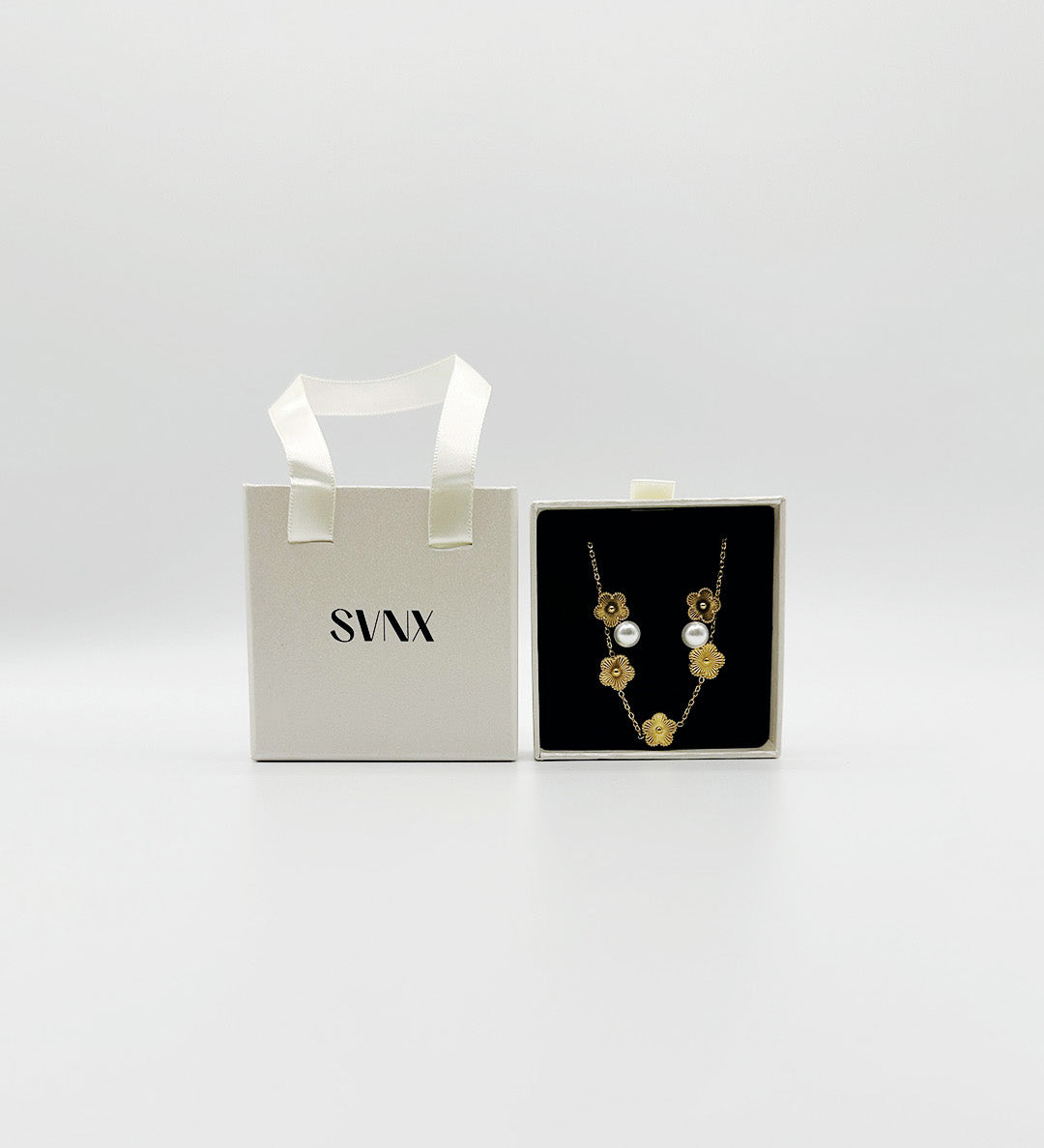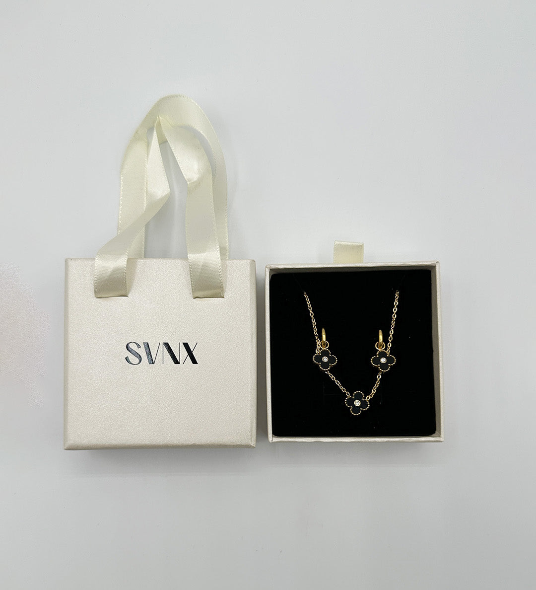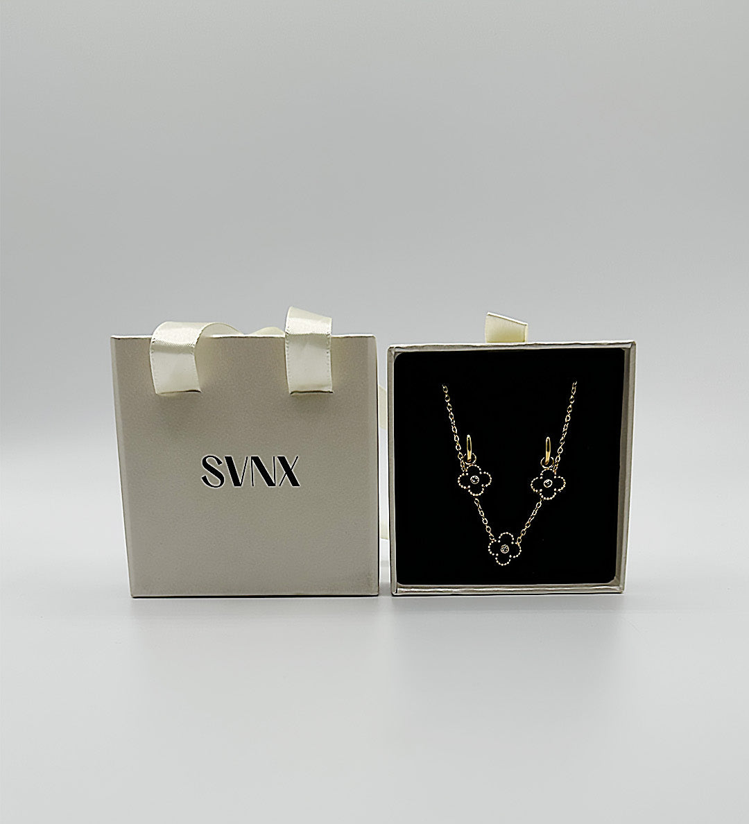 Mini Clover Necklace & Hoop Earrings in Gold with Gift Box