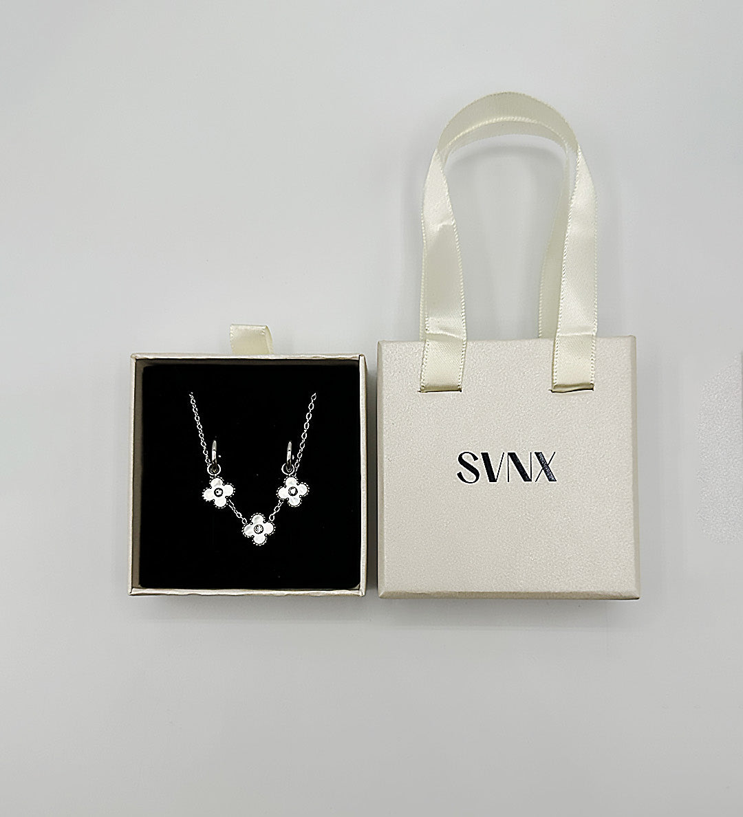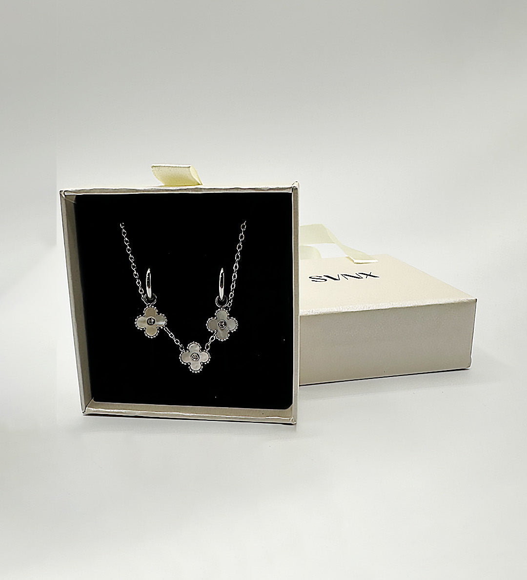 Mini Clover Necklace & Hoop Earrings in Silver with Gift Box